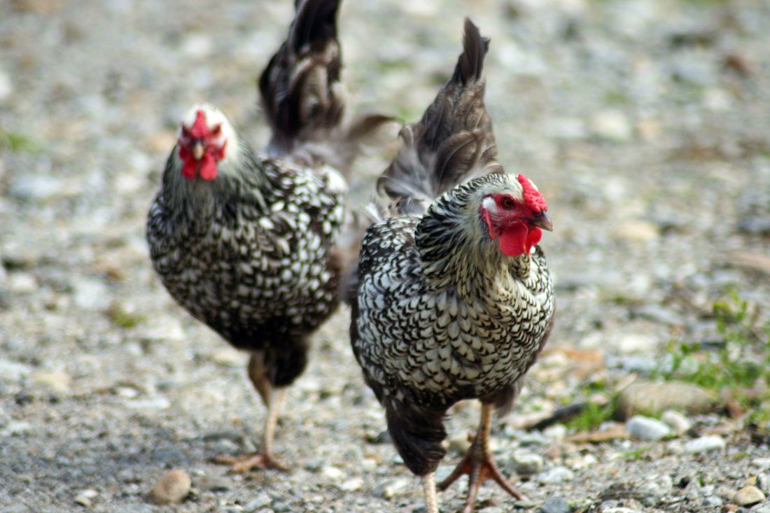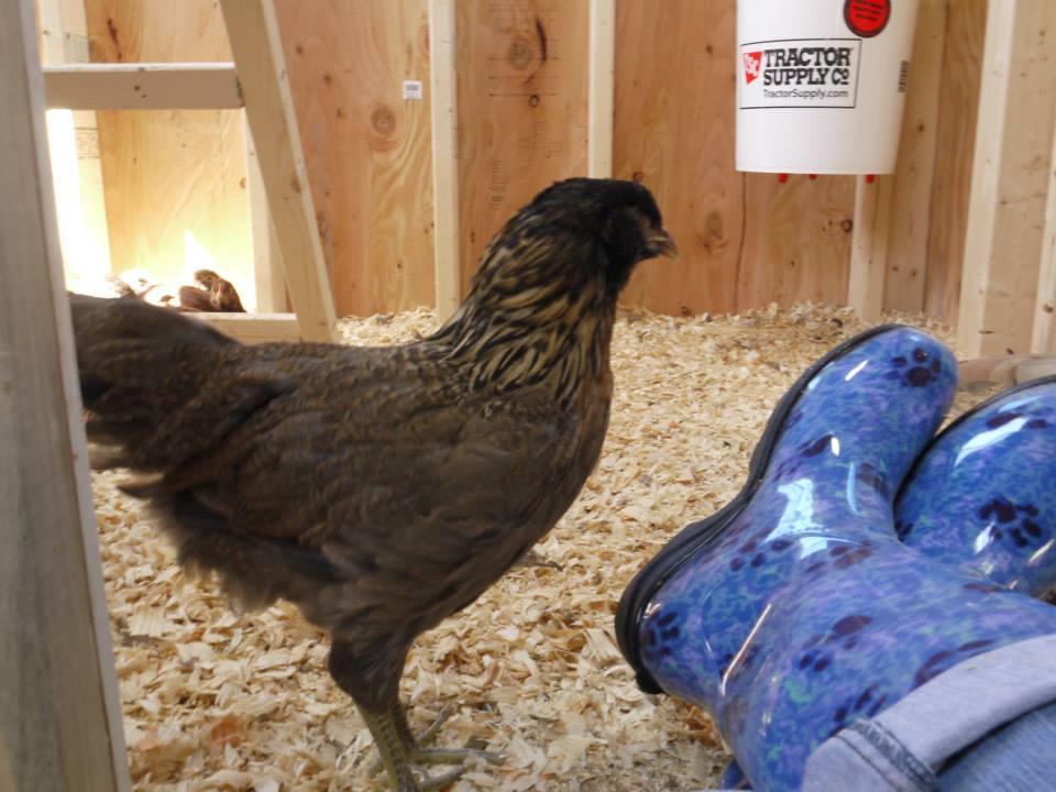 Betsy is the dark one, on the left and Lucille Ball is the redheaded one, on the right. Betsy is the only one that has a beard. They're both a bit skittish but such pretty chickens. Betsy (left) has an attitude. She loves to chest bump and fan out her neck when ticked. Lucille Ball (right) is not as bold but still is skittish. Pay no attention to my photobombing Black Star, Copper. LOL