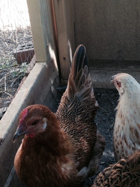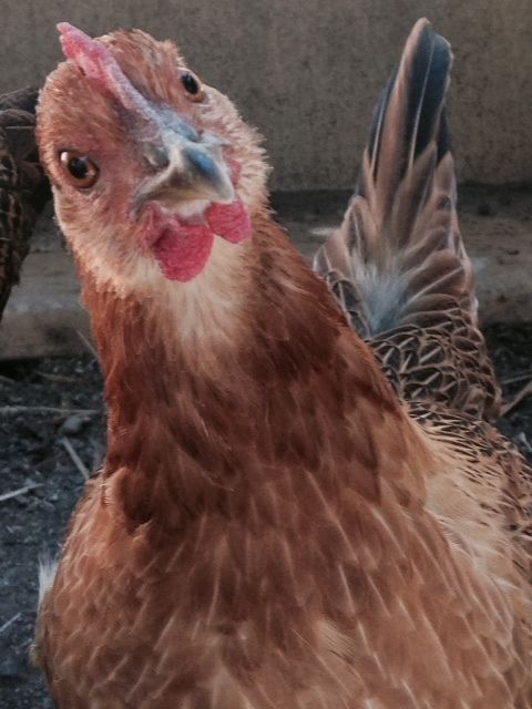Sorry for the blurry pic. This one is Wheatly. She has more of a gray/blueish underside and a light red head. She isn't skittish at all. She's the one I'm 99.9% certain is a girl because, just today, she started "submissive squatting" and checking out the nesting boxes. :) She's about 17-18 weeks old now but was only 12-13 weeks in this picture.