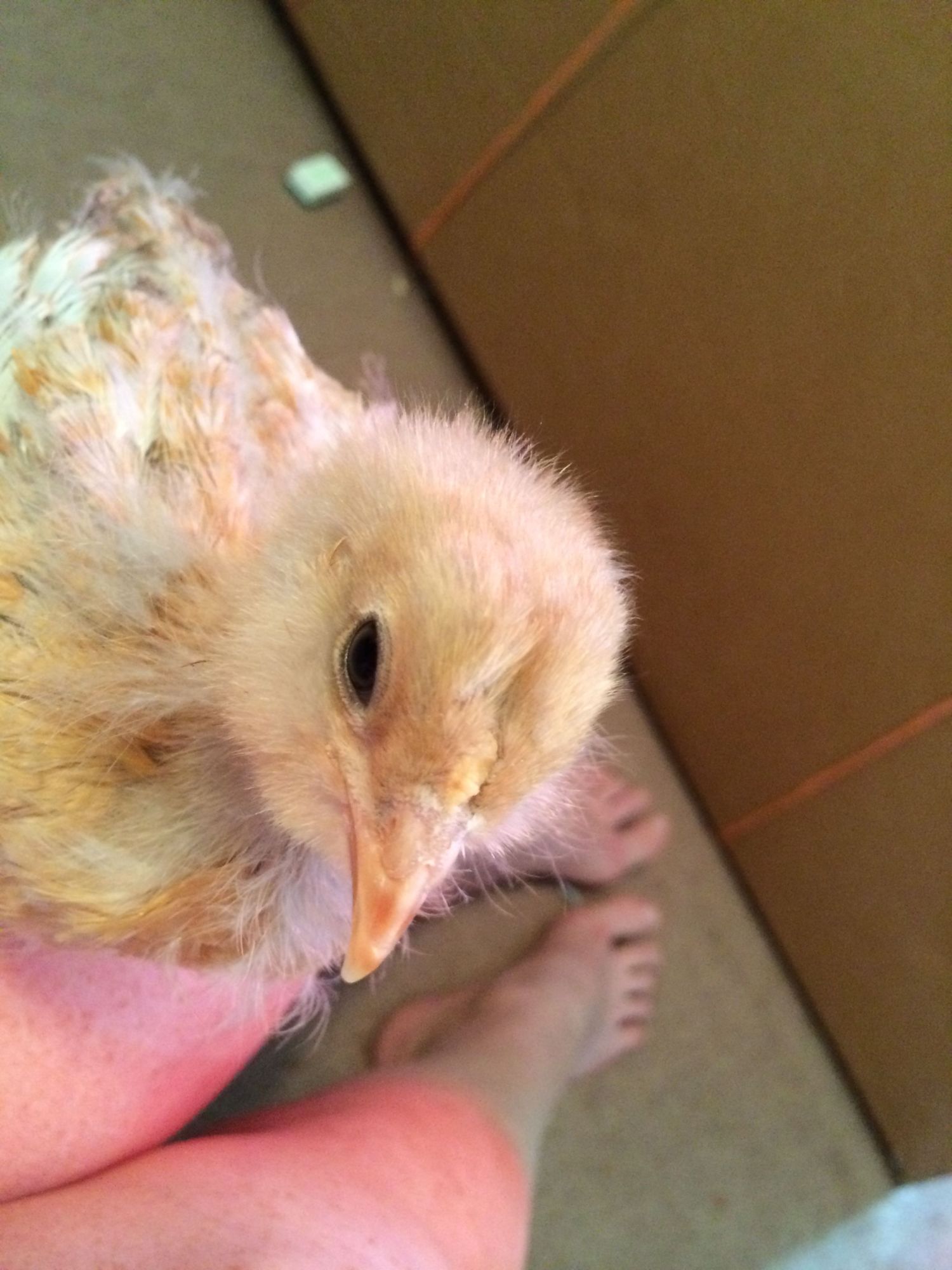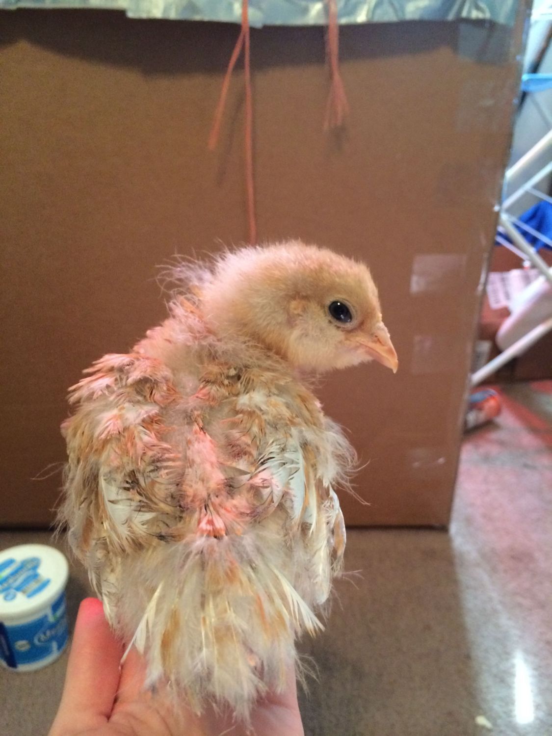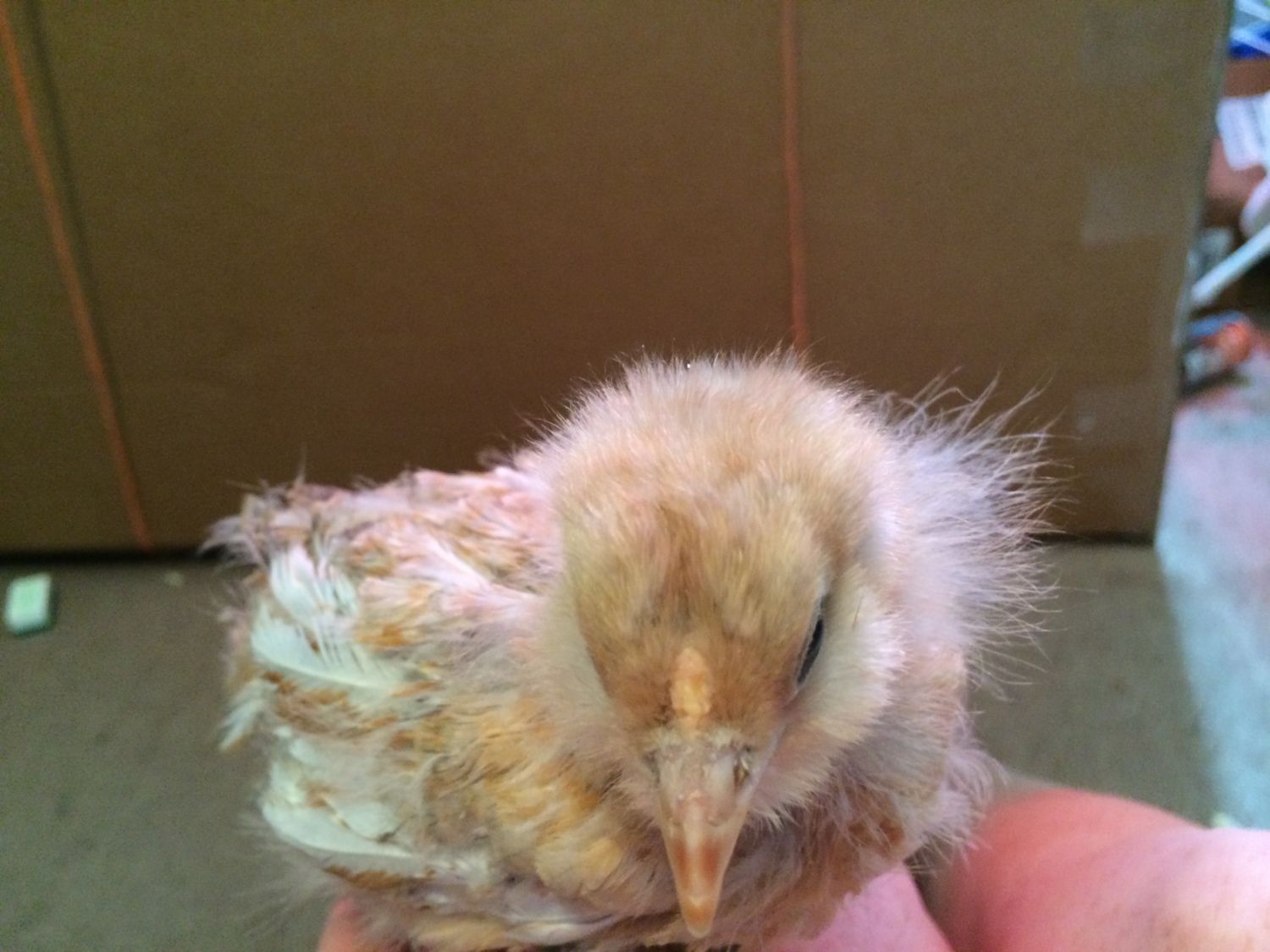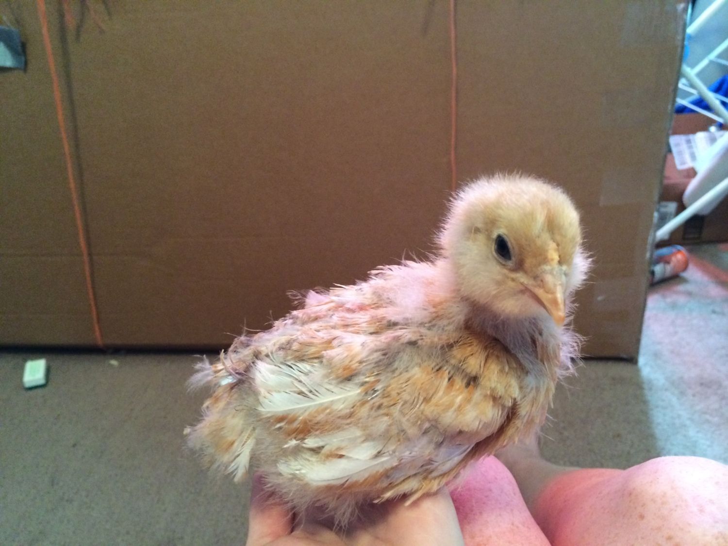 Oh, for the record, I think it's a cockerel with that nubbly comb. Please update us in a week or two. I would love to see how the feathers continue to develop. (And if it's a boy.