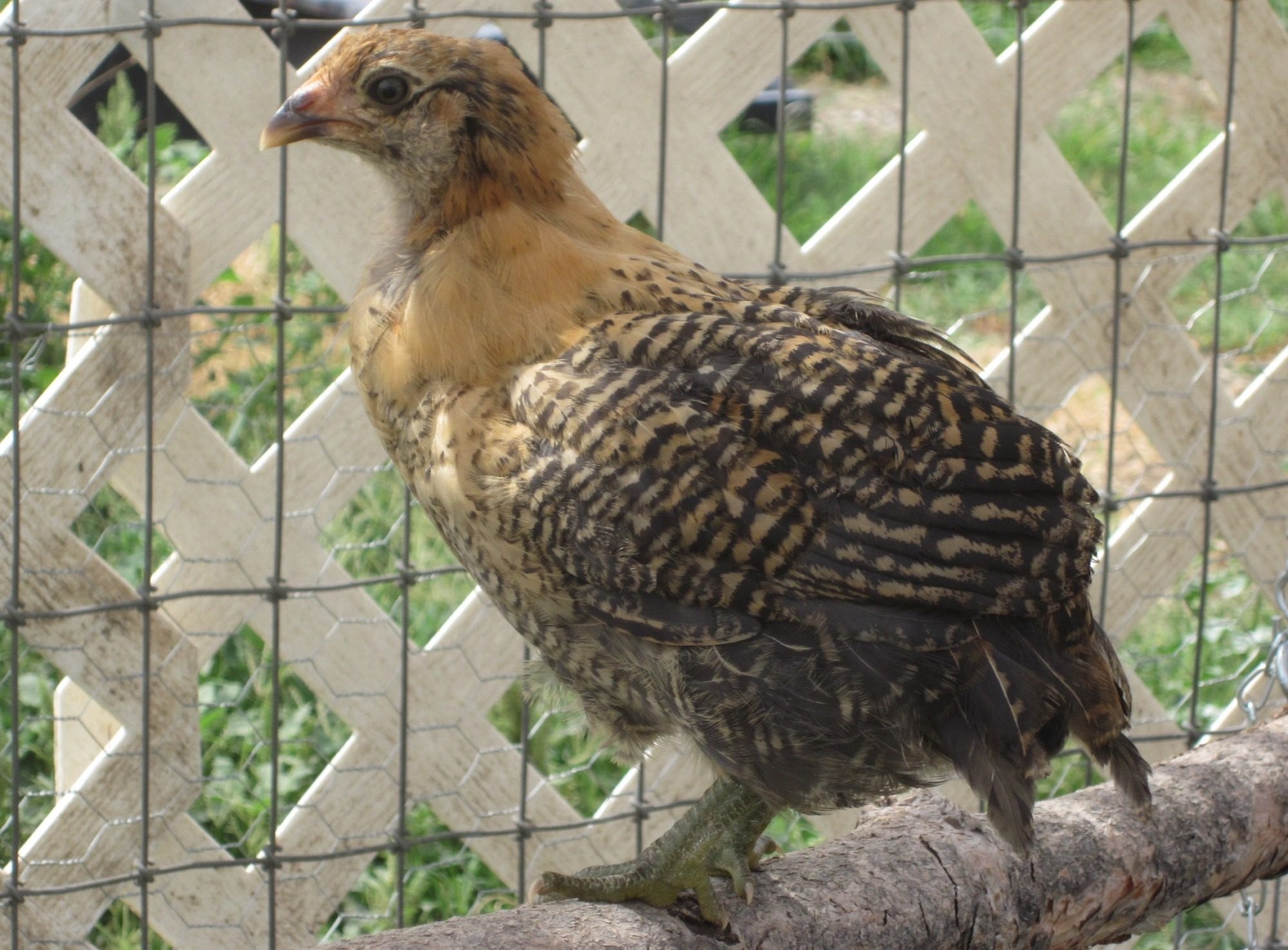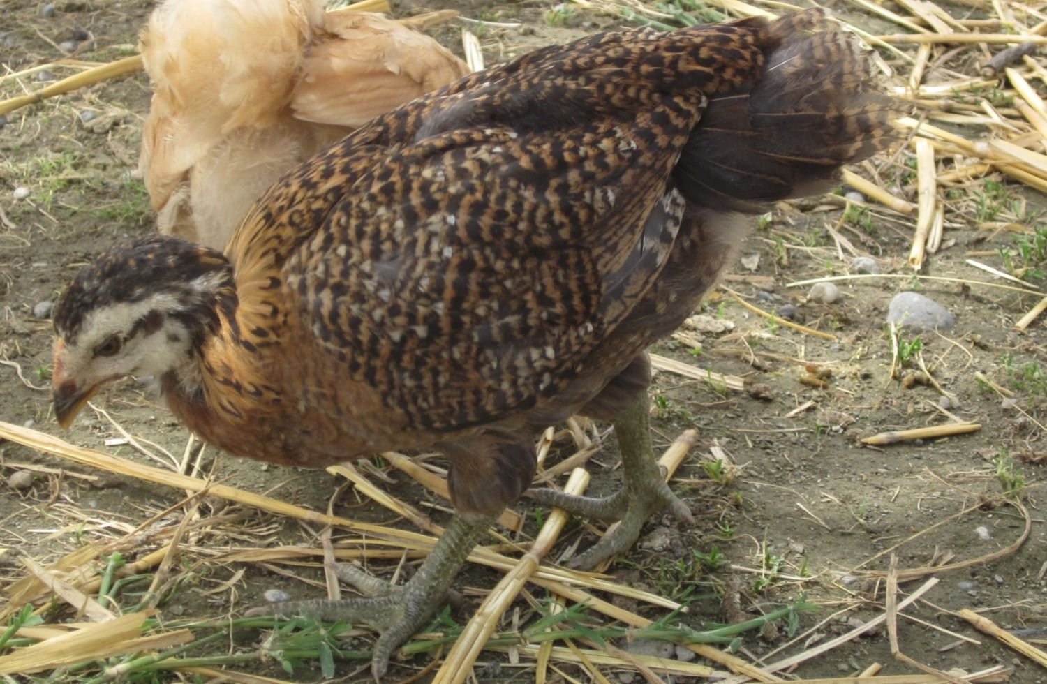 This is Munk an Easter Egger pullet to compare. Same age, but the feathering in is very different. Sulo's "big boy" feathers came in later then Munk's "big girl" feathers.