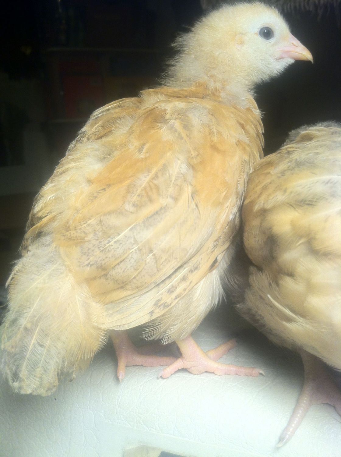 Great, thanks!They both seem to have the single comb, rather than the pea comb. Also the dominant color is the buff. I think you can rule out the barred rock for their mothers. A barred hen with a solid cock would either yield a barred male offspring or a solid black female offspring.