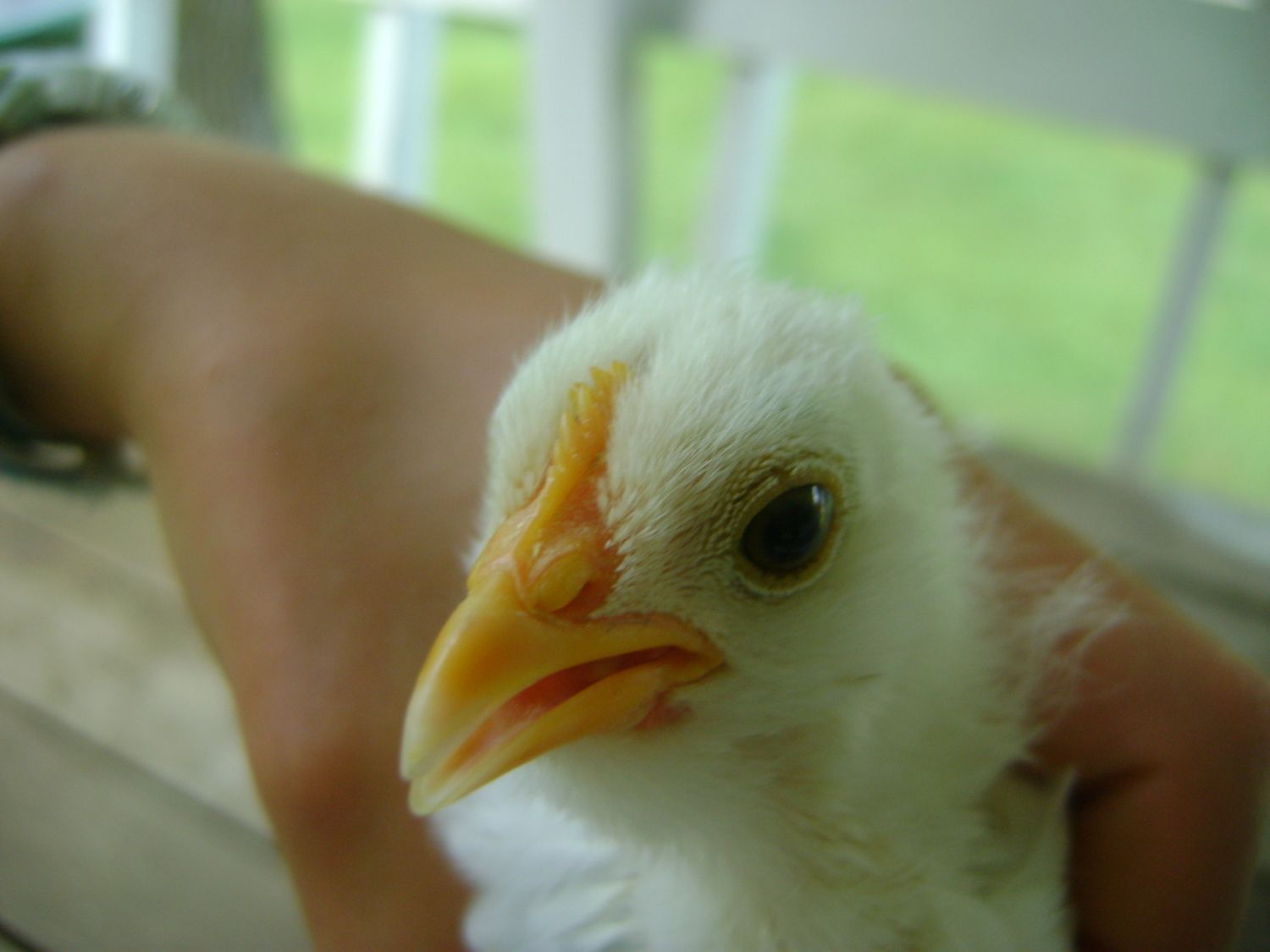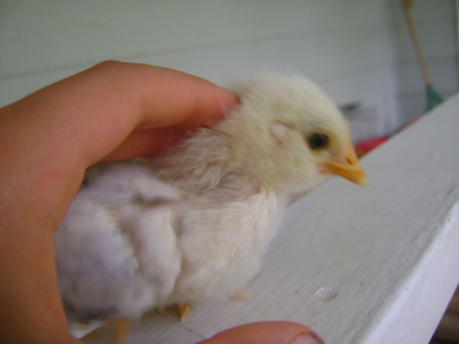 Here is Elsa! Very flighty and loud when separated from Ana. No color on comb. She acts more like a girl. Also she has gotten her feathers much faster then Ana. Both Ana and Elsa have gotten their feathers faster then my Black sex link, Brown sex link, Australorp and Silkie did when they were that age. (faster then my RIR roos too) They have been the same weight of either my Black sex link and Brown sex link at the same age.