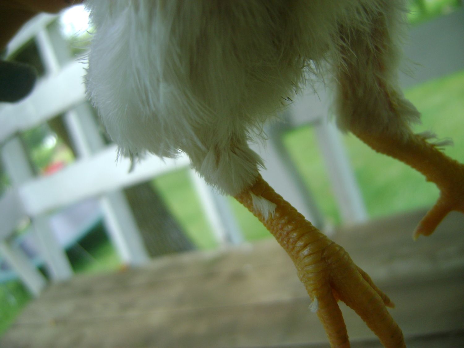 She has some feathers on her legs so I'm wondering what breed/breeds are in her.