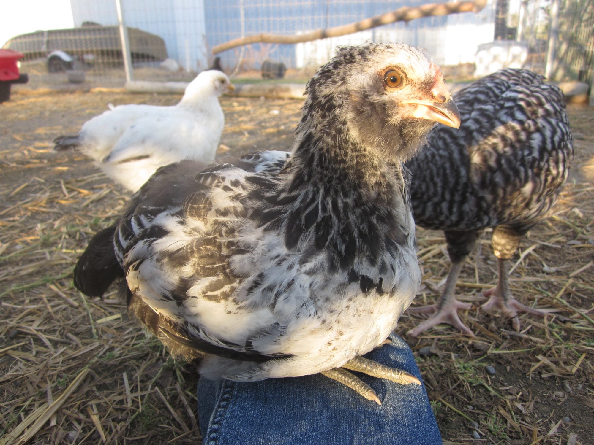 Now I am wondering about my black and white EE as most people are saying they are most often Roos :) Mine is my largest at 5 weeks, so I think she's a she. Yes?