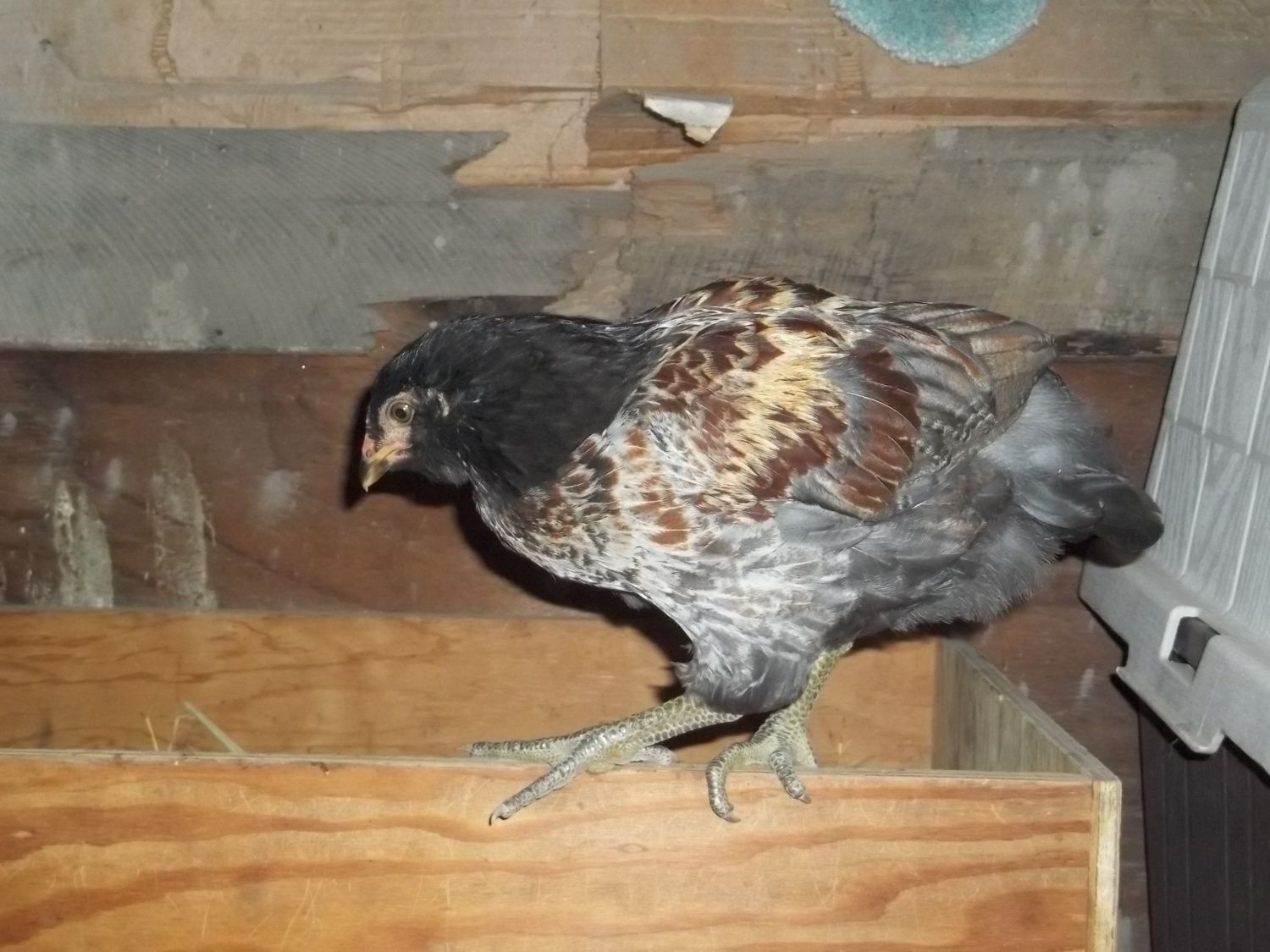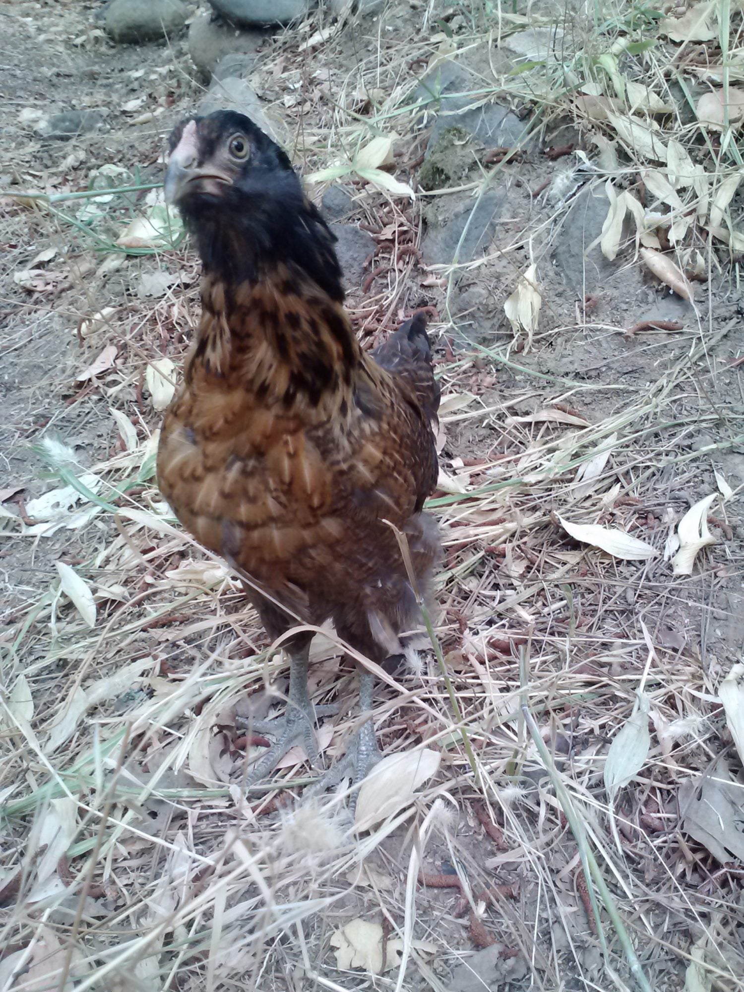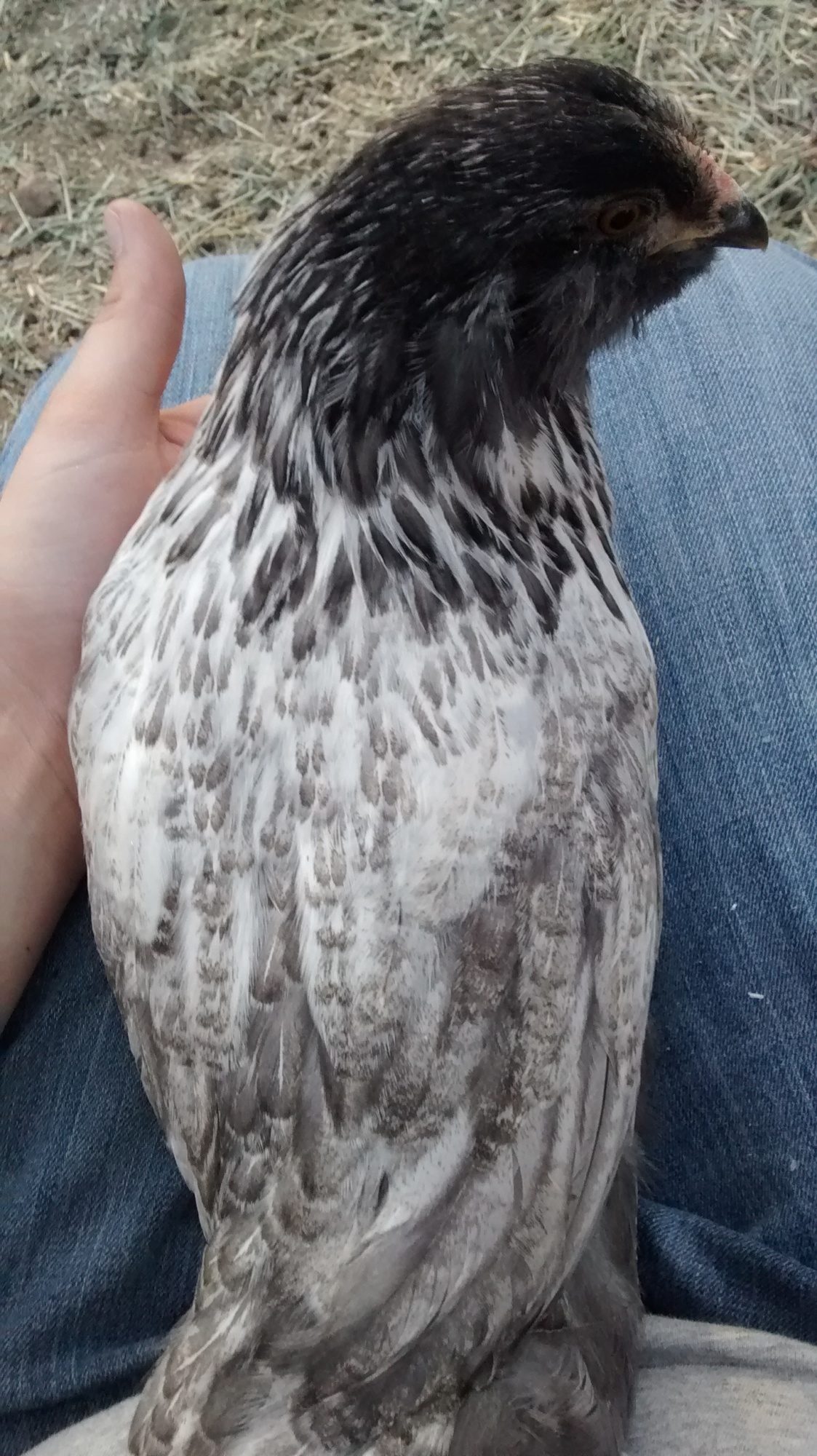 Carry has a wide comb but light in color and the feather pattern is that of a pullet. So, I am calling girl on this one.