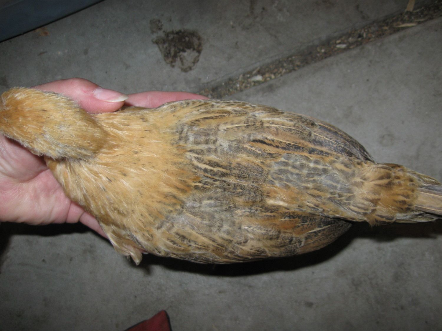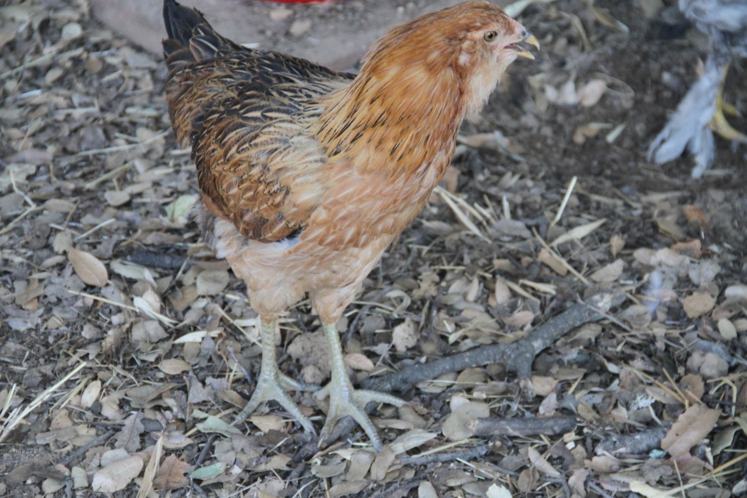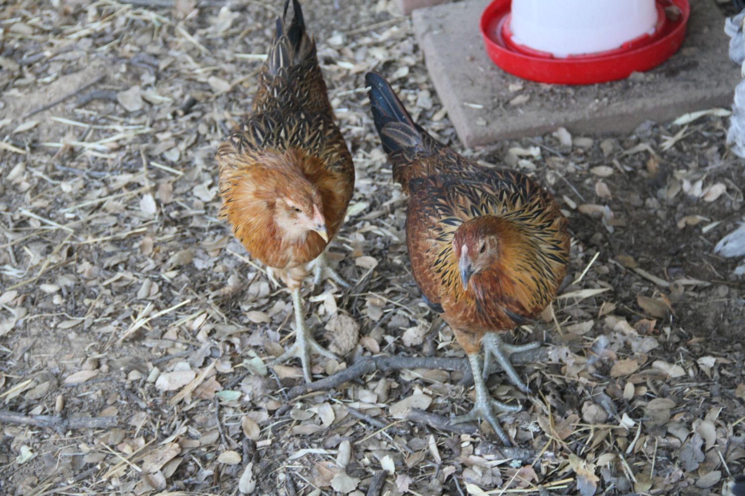 The first 2 are the same pullet/roo It has been real "pullety" but I wonder because of the little rusty spots developing on the wing area.. The 3rd one has developed a lot of red/rust early in development....figured that would mean roo... The last one is "buttercup"....just seemed to fit after all she went thru.Sorry to hear about the coyote attack, those things are terrible.![]()