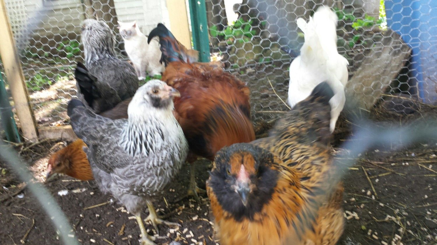 sorry, but I'm still lost. By the time my daughter and I realized that the all-female chicks we ordered contained at least one rooster (we heard crowing), we didn't have any earlier pics to go by. They are a few weeks away from laying age and still haven't a clue about any but one (tell tale crowing, long curved tale, much more brilliant shine). Our others have a mix of characteristics. Since it's hard to get the similar looking ones to stand still and smile during photo shoots, all I have is a mixed bag of photos and a very short vid on my google+ acct. Can anyone here help? The company we ordered from has a 90% accuracy guarantee, but we need to know how many replacements we should be getting. Living near town, we aren't allowed to have roosters. We don't have a lot of $ (who does?), so I can't risk buying more potential roosters. As is, I have no idea what to do with the one, or more that I have. Does anyone here want to buy them, cheep cheep?
