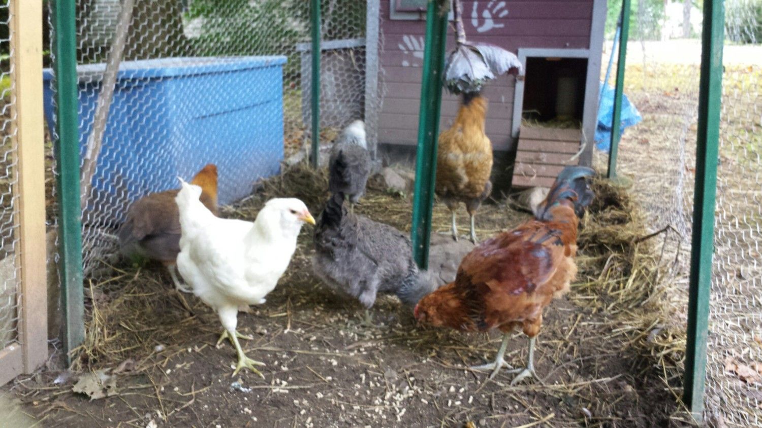 Hummus is an Easter Egger Pullet & Greg is an Easter Egger Cockerel.