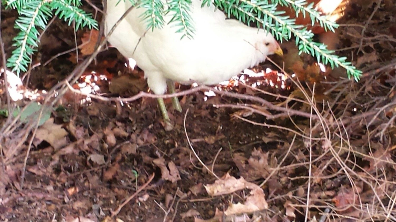 I have a white pullet with dark green legs that looks just like your Hummus. The store labeled her an Americana (they misspell it purposefully, so as not to confuse it with the true Ameraucana.) The Americana are aka Easter Eggers. Well, she turned out to be a Olive egger. Her eggs are definitely a darker olive color as compared to my other EE that lay light green eggs.