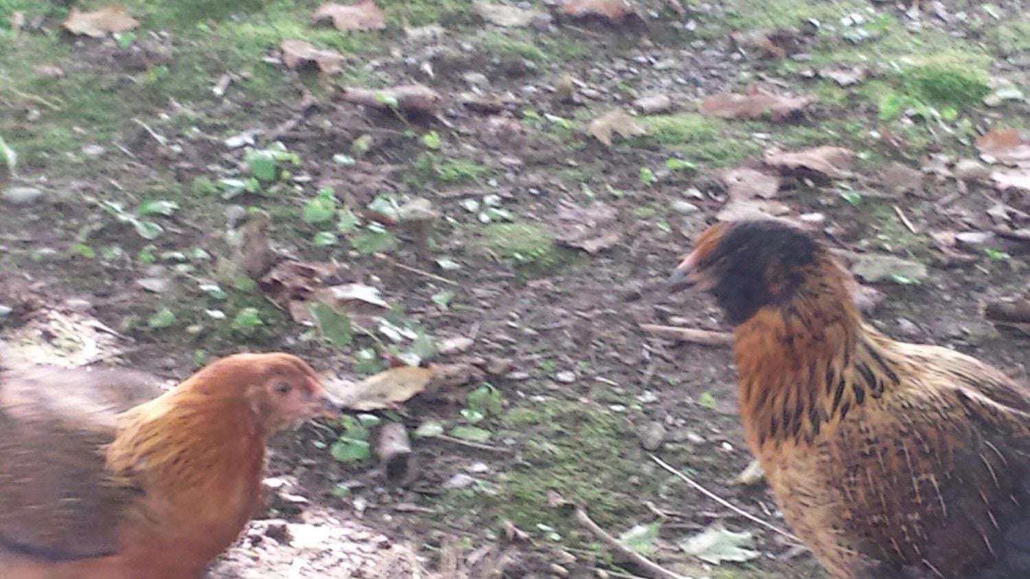 Chickzilla has muted colors (left) while Cher (right) has darker browns, esp on the head, and more of a comb