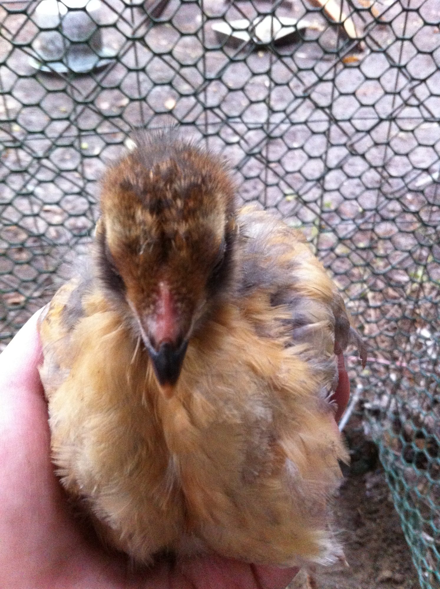 5 week update: There's still no color in the comb, despite what the pics show. I can't see where it's grown at all. The patterning seems to have mellowed out a bit on the wings, I need to get a pic of that. I have two others with EE patterns, but they have single combs. At what age do those start changing? They both look the same, small and no color.