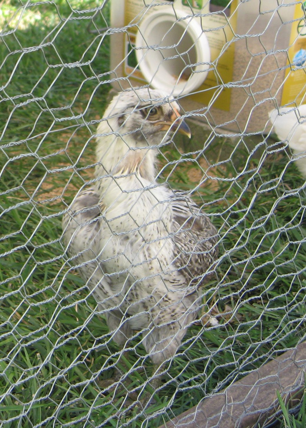 Hanging the cabbage: I use a skewer to poke a hole through the cabbage and then push a wire through. I usually use ½ a cabbage at a time. Twist the wire ends together and hang by a cord from a rafter. There are probably other ways to do it, but this worked for for me. It takes them longer to eat it this way because it swings when they peck at it. Kale leaves can just be thrown in too, and it will take them some time to figure out how to rip pieces off. The bigger/older they get, the less they tend to fly, so I have never had problems with them flying into a cord. (Also, they need access to pebbles/grit to digest anything other than crumbles/pellets.) I love watching them play like that. My EEs used to play chicken-bomber when they were in the brooder, as soon as the wing feathers came in. The other chicks didn't know what hit them!![]()