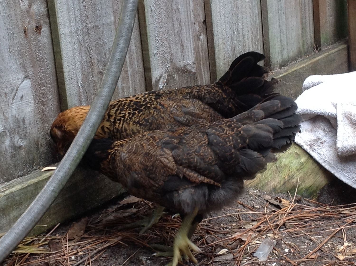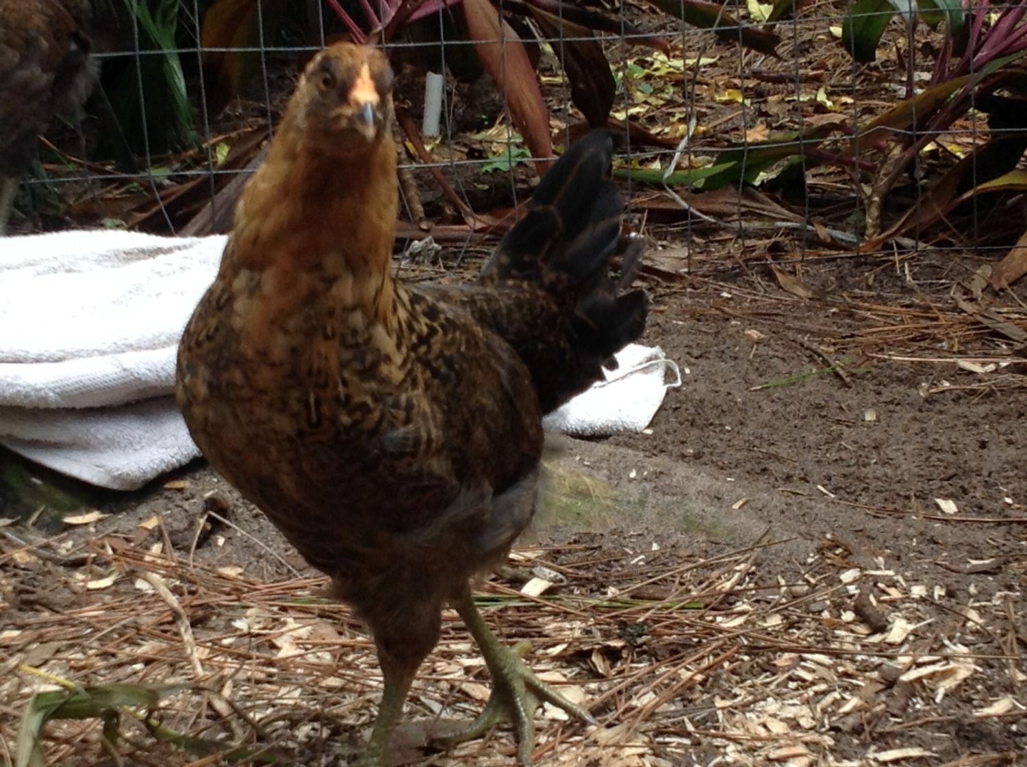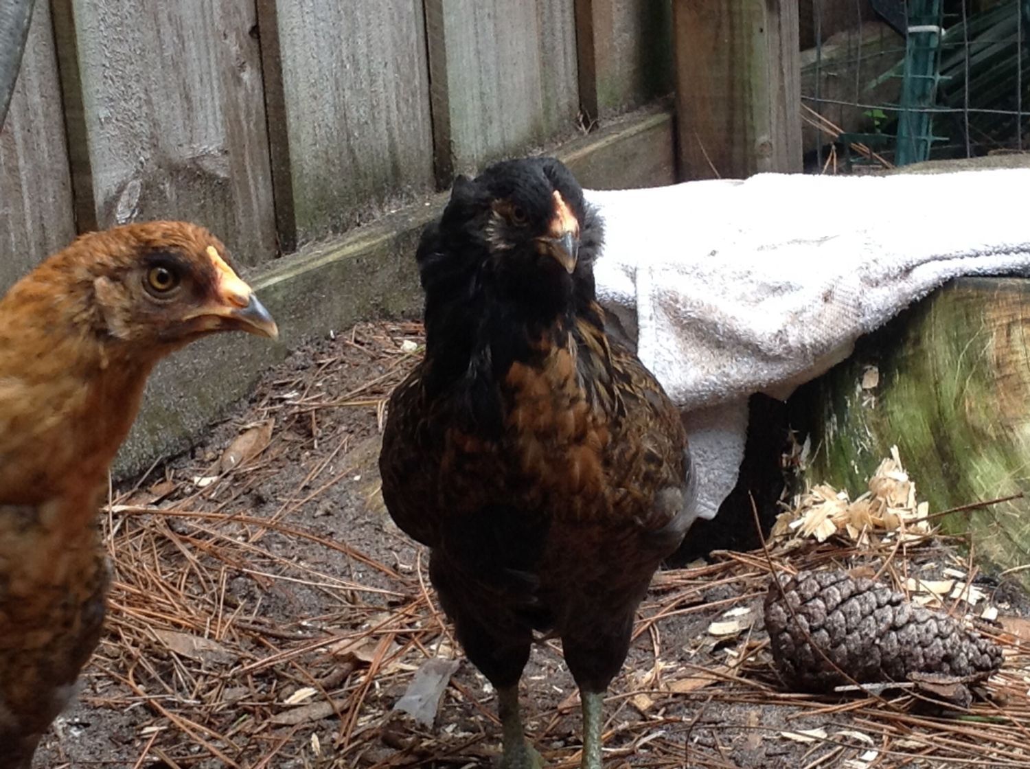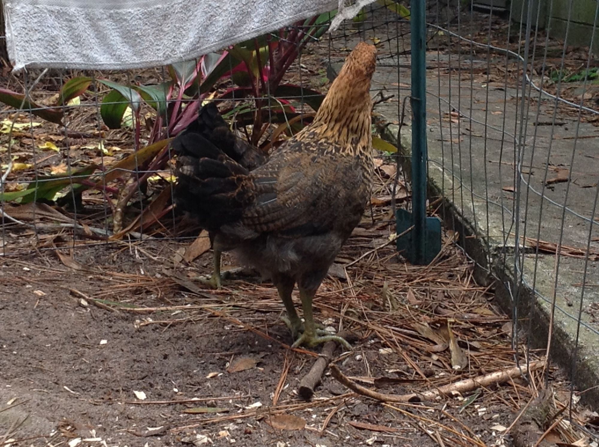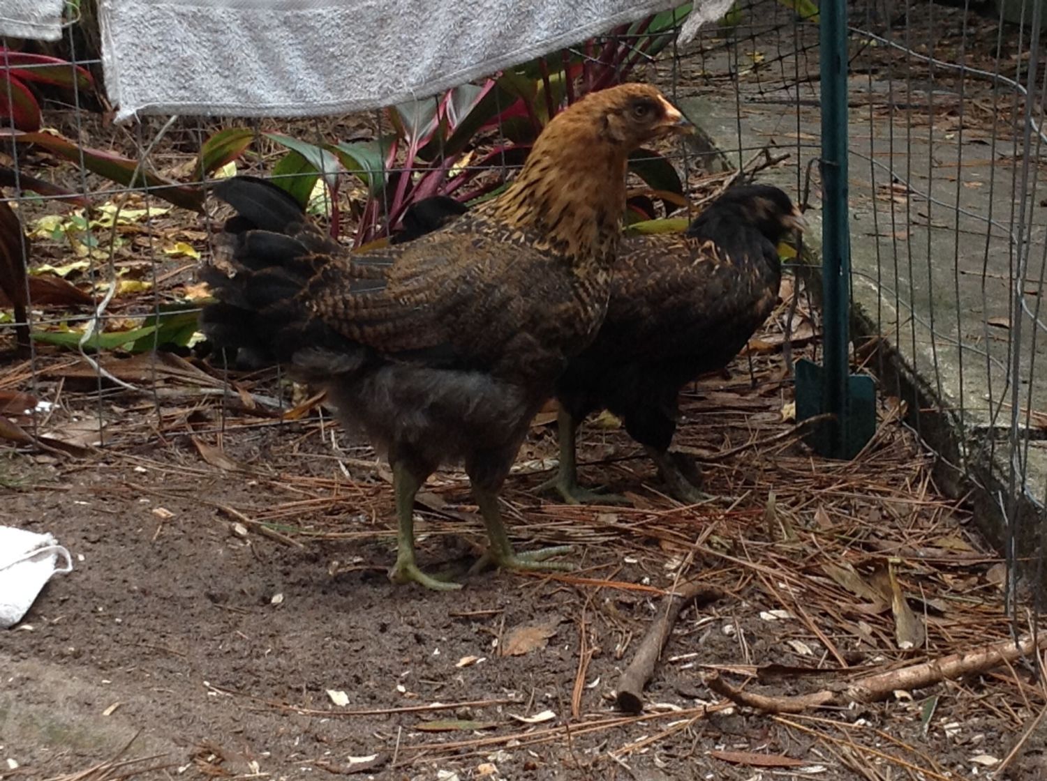 They have been moved out to the coop area next to the two older hens. I will try to get another picture.
