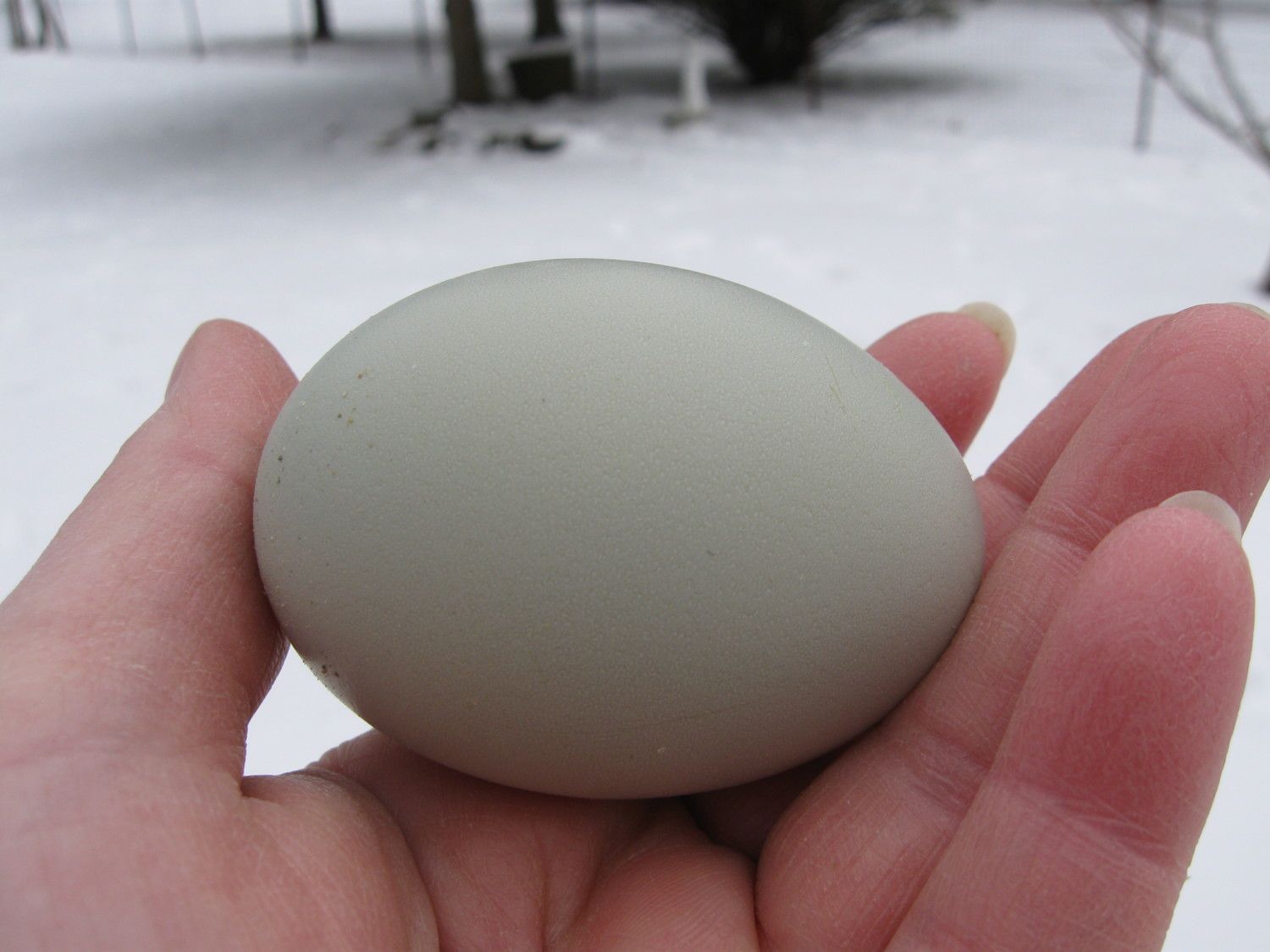 Omelet will be nine months old next week. She started laying back in August, stopped for a bit & started laying again last month. Dad was an EE so she gives green eggs. Mom is a pretty, jumbo egg-laying mutt, so she also gives HUGE eggs (between 2.5 and 2.8 oz each!) To top it off, she made 14 eggs in the last 18 days. I can't complain about her production. I suppose my daughter chose a good keeper.