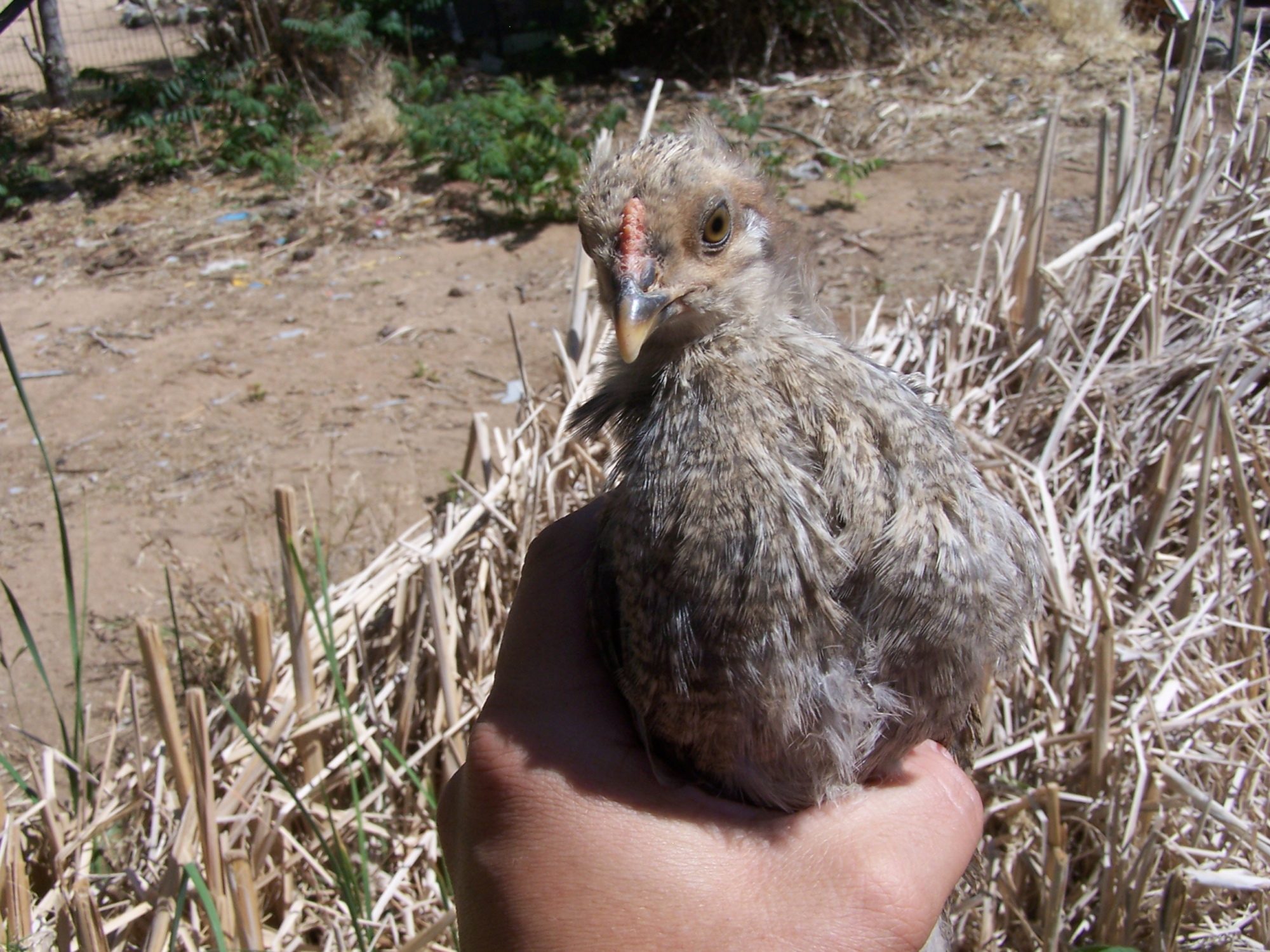 Both look rooish to me.I posted pics of my EE's in another post but I'm curious what y'all think about comb development. I have two that are "pullet" colored, zero male indications at all- but have a slightly taller ridge and pinker color to their comb than the other two. BUT- they are also the two darkest chicks. Has anyone had a hen that showed pink in their comb early (4wks)? I've looked all over and it's driving me nuts because I just can't figure them out. They're definitely not red, but a little more than flesh-colored. I had posted pics previously and got some good guesses but I have better pics of their coloring now and would like a second look. All photos are unaltered, taken in full sun no flash.