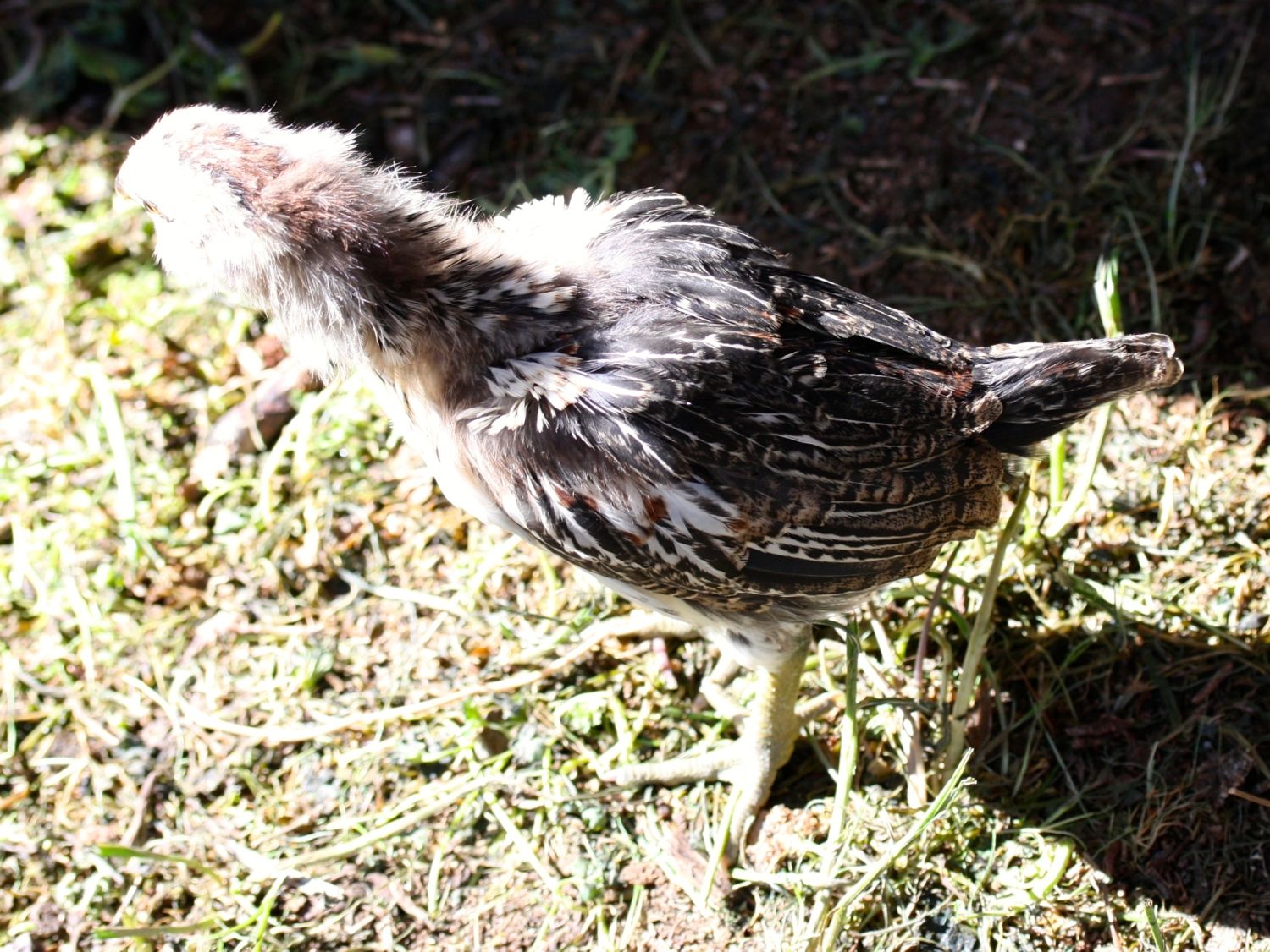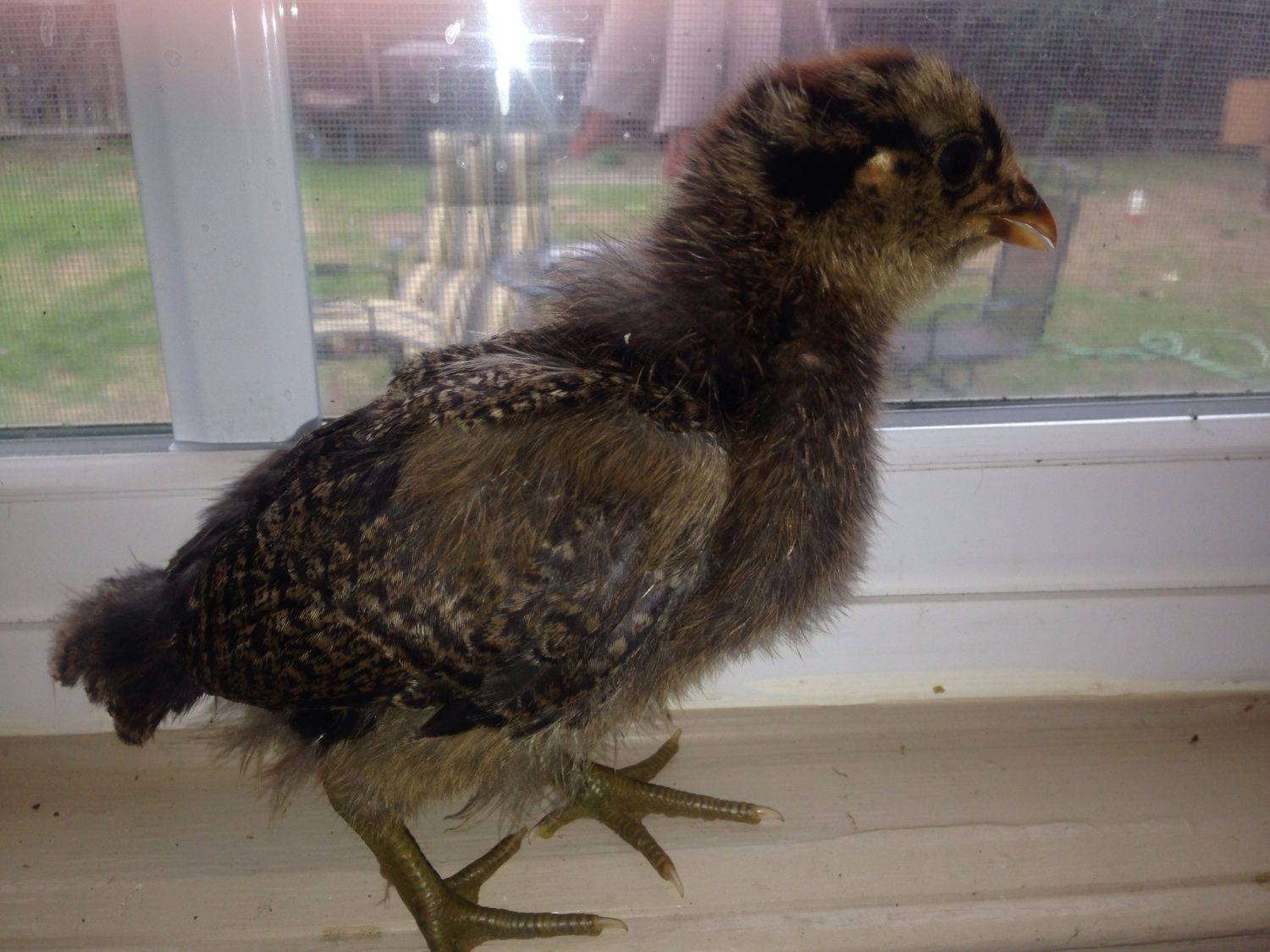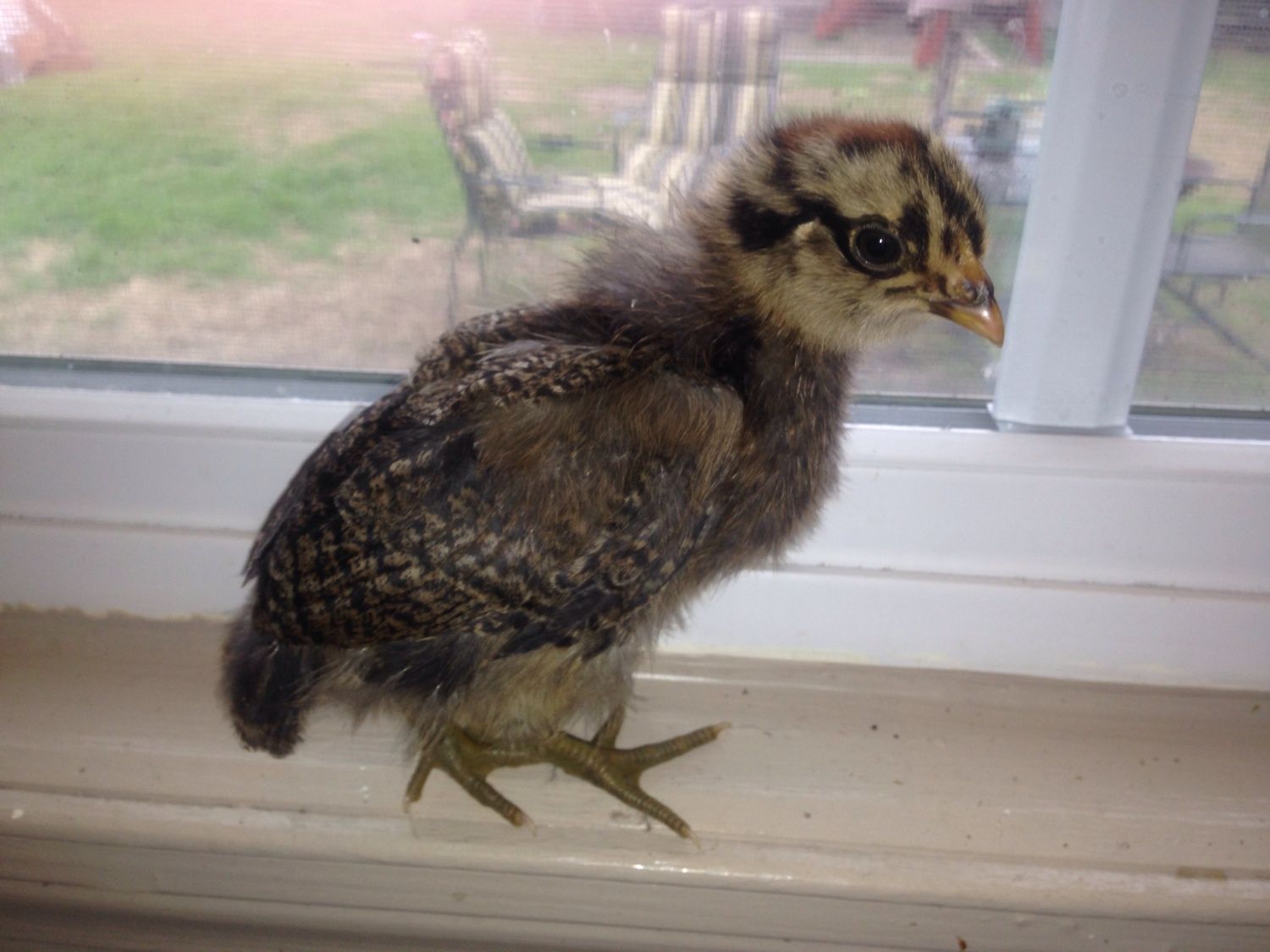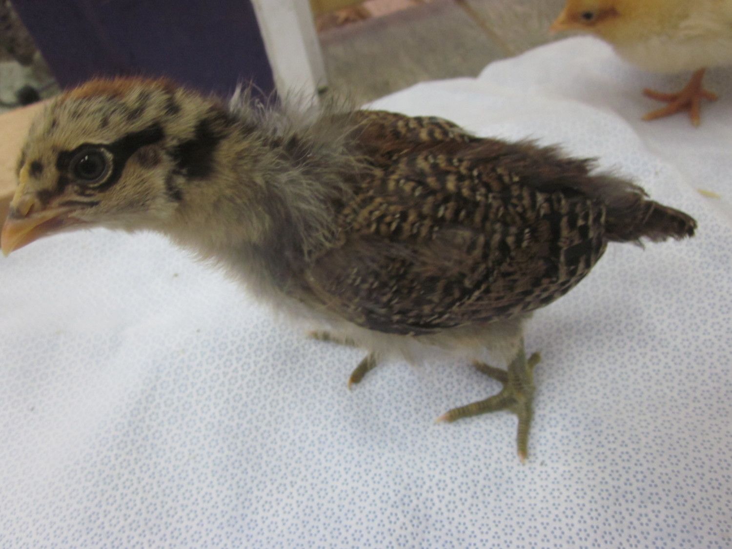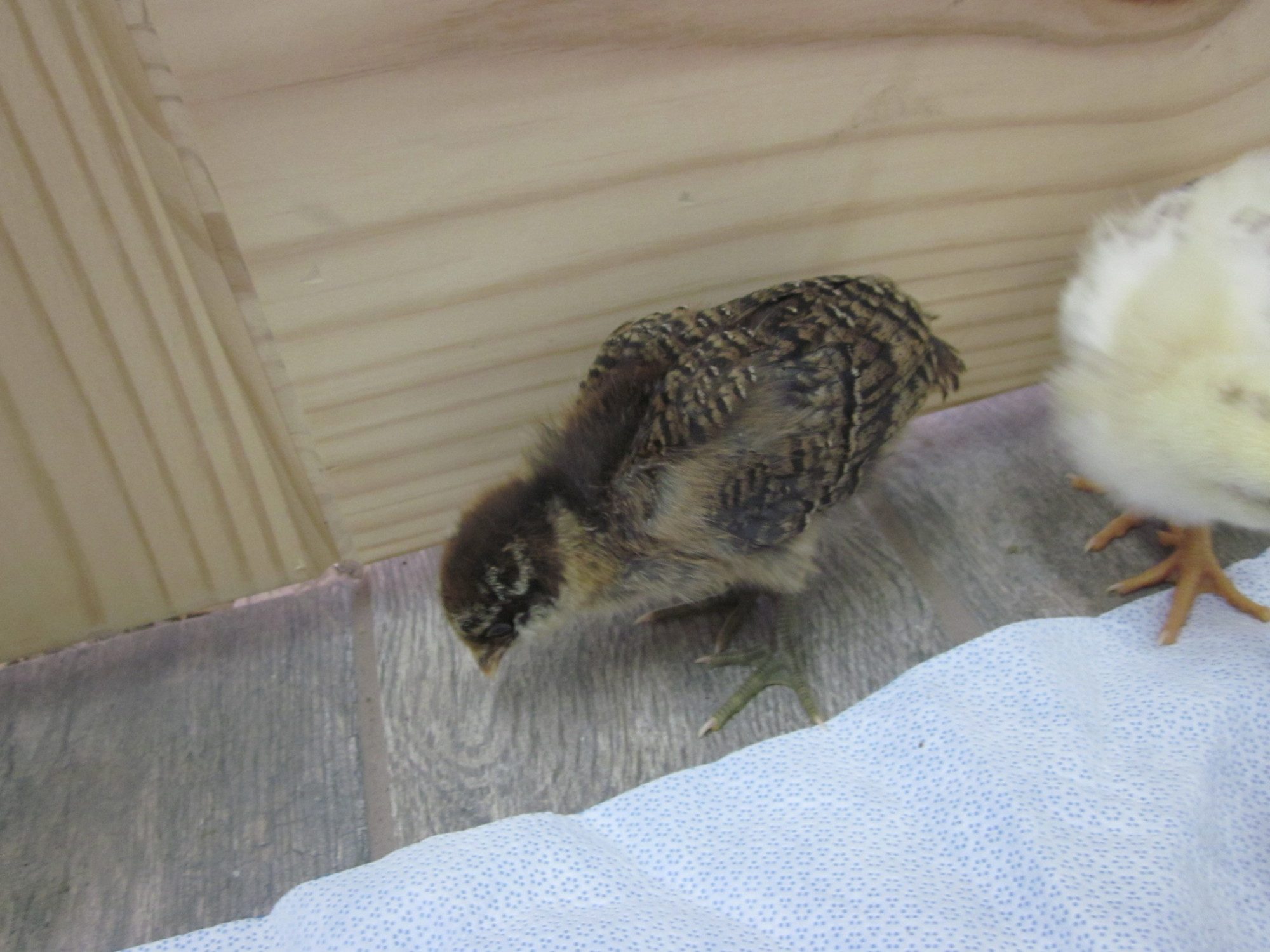 The 2nd picture looks just like his/her mom! I hatched 5/6 of these two ladies eggs I'm pretty sure the last one came out of the green egg which is bubbles the darker of the two.Coloring looks a lot like my pullets did at that age. Here are my two most similar pullets at 2-3 weeks, and again at 12 weeks. So I say its a girl. #1![]()