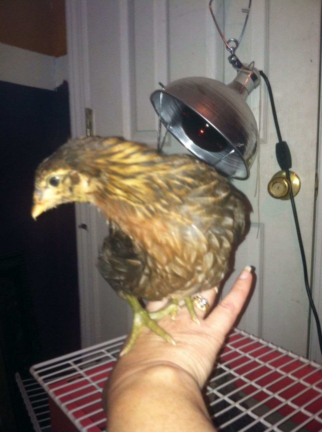 Please excuse unsolicited advice, but when chicks are fully feathered they do not need a heat source except in extreme cold. So if that heat lamp is for them, you can save on electricity. They don't need it, especially indoors.![]()