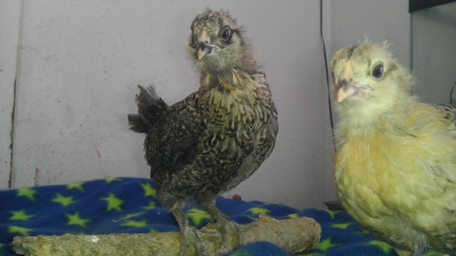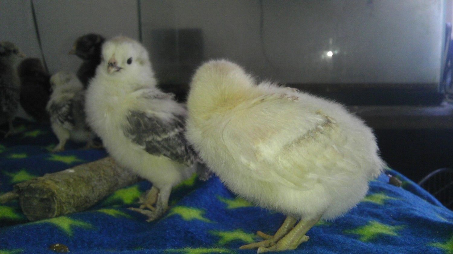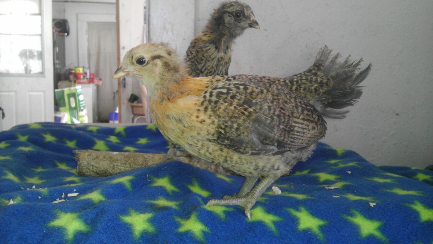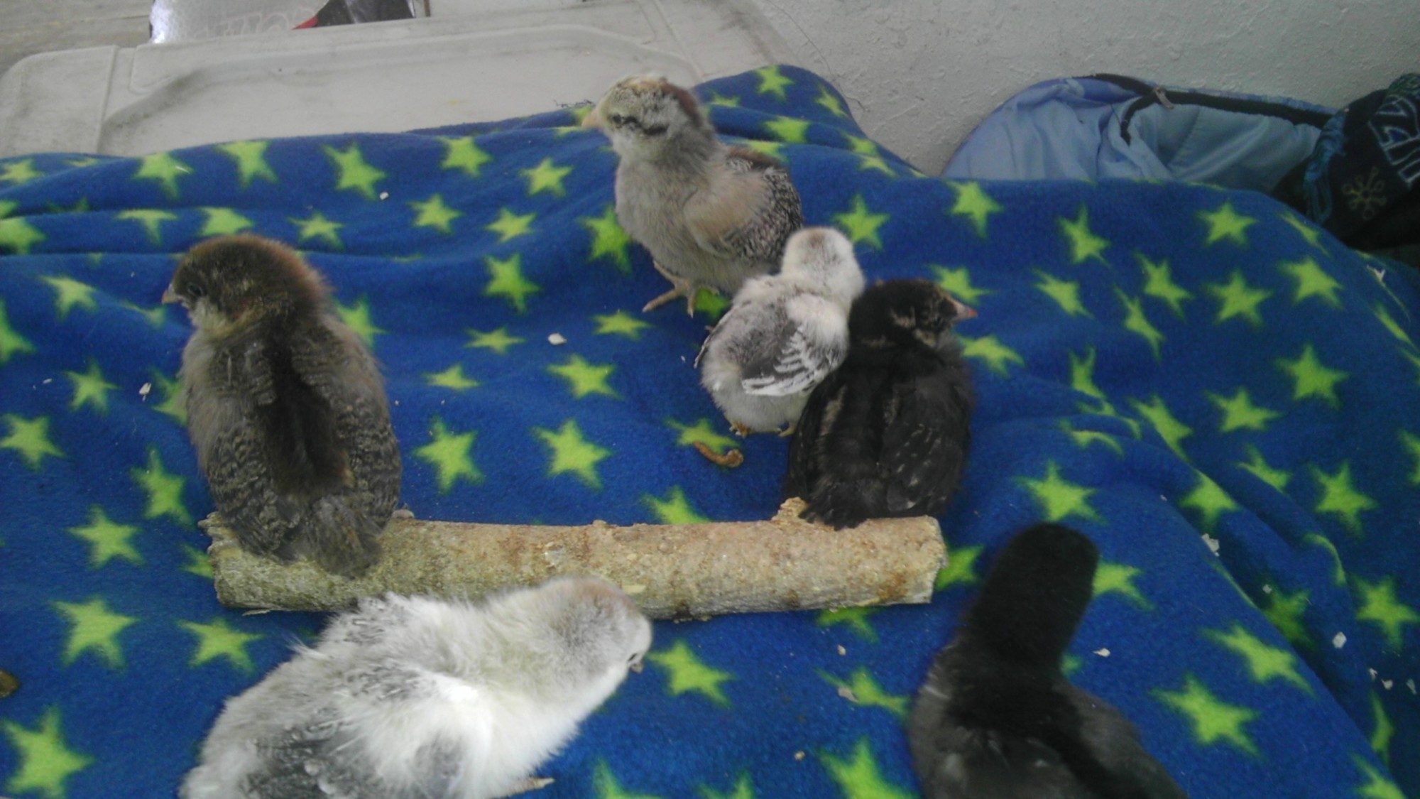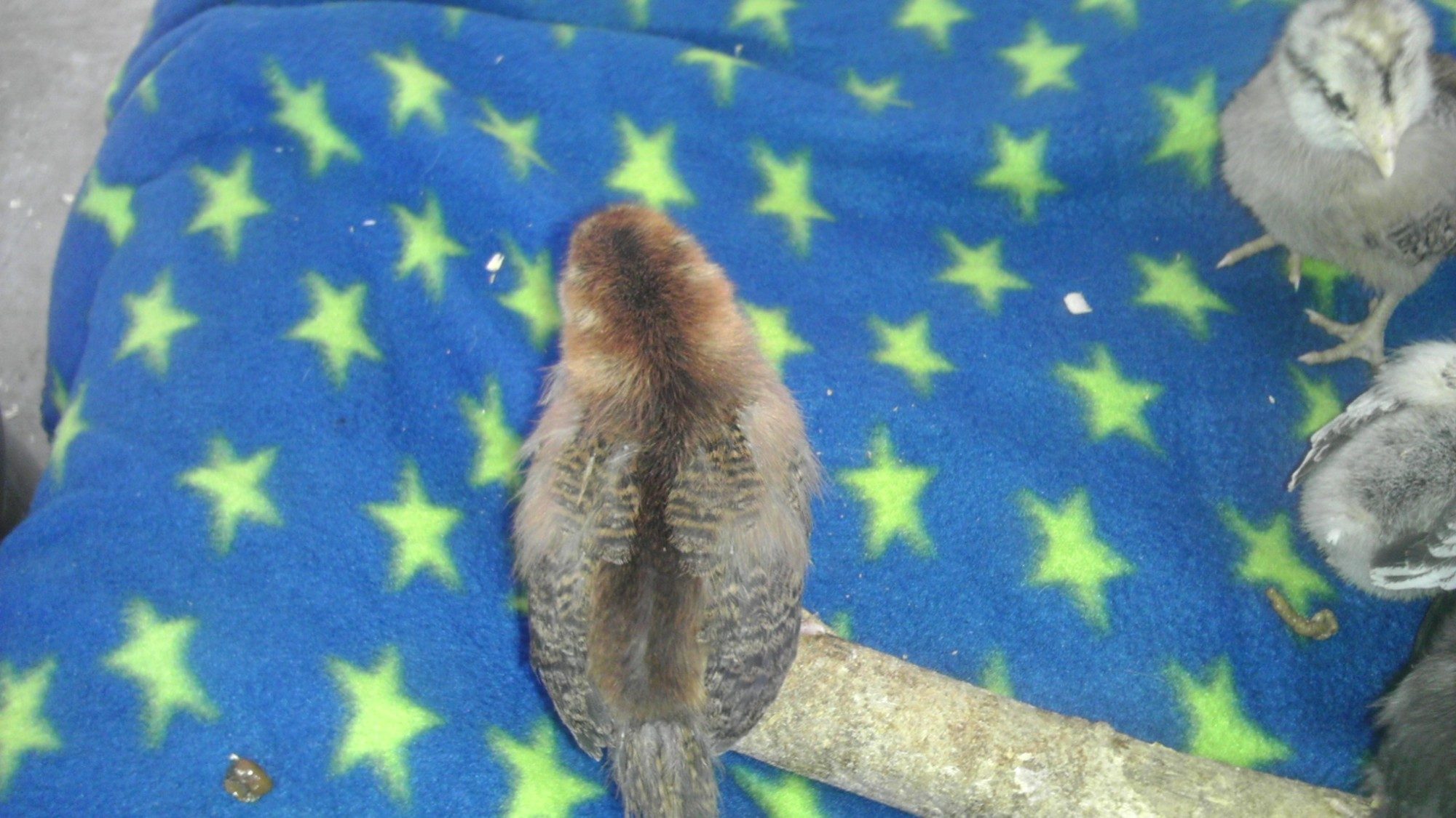 Yes they were supposed to be pullets. I believe they came form Belt Hatchery in Fresno California. IN the first picture, I was referring to the chick by the brooder with the red coming thru on the shoulders and in the second pic, the one on the feeder. They will be 5 weeks on Thursday this week. The one on the feeder has the opposite colors coming thru on the chest. The back is chocolate with marks and the front is white with marks, but you can see that in the picture. I'm really hoping that the one on the feeder is a pullet because she is so calm and the other one is very domineering to all the other chicks and to people acting very cocky and has really thick legs and the comb is turning slightly pink. I'll take better pics tonight of all of them and post again. Thank so much!!!