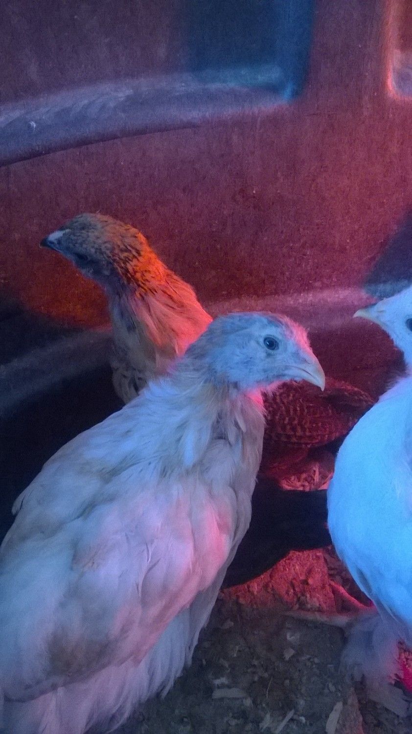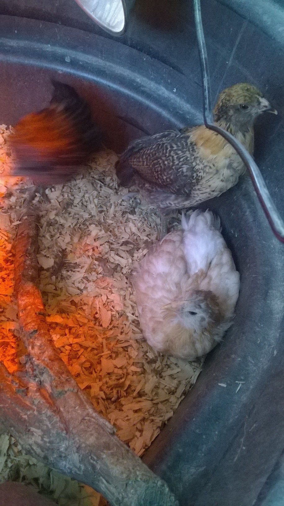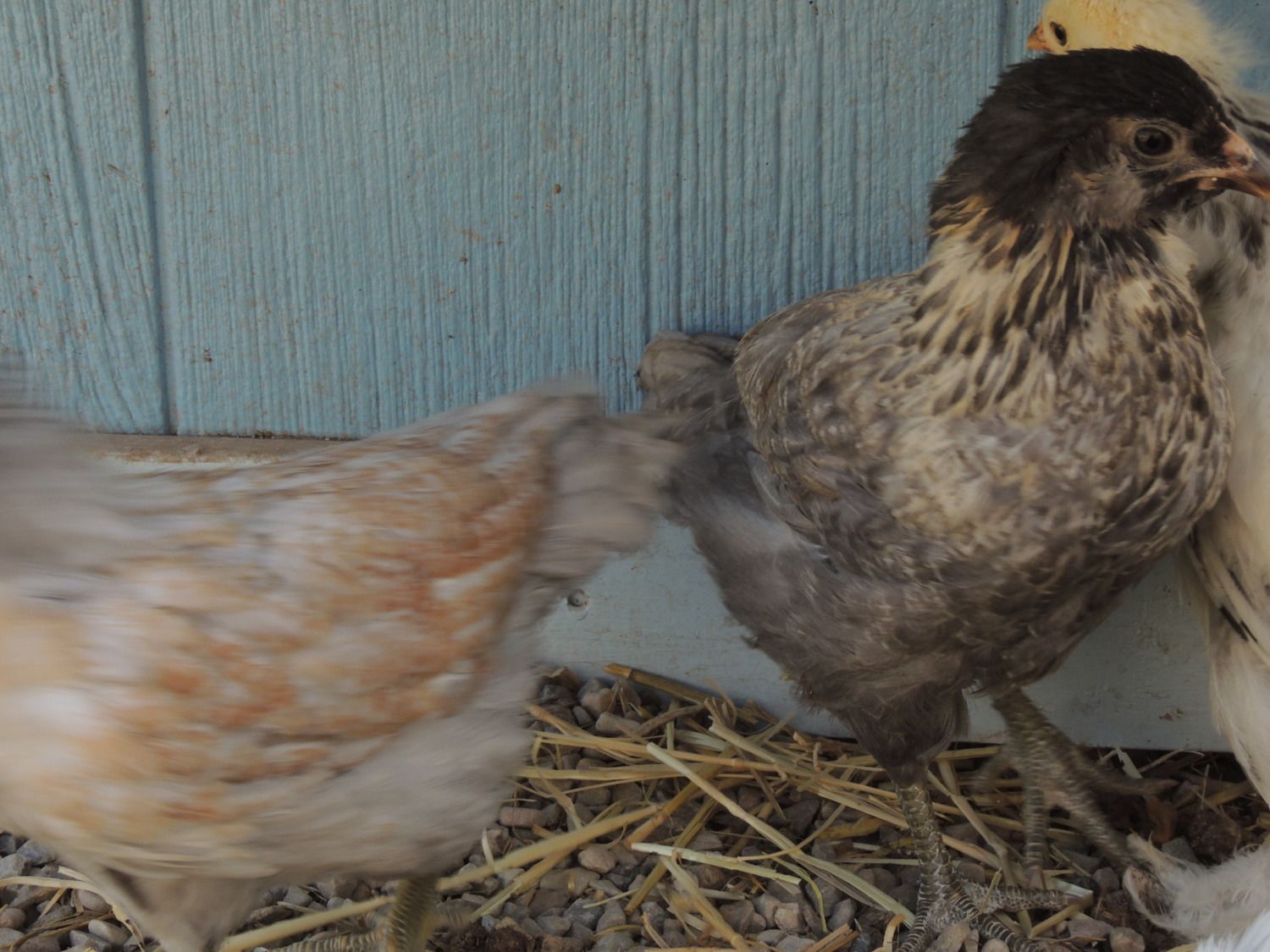 My easter eggers are 4 weeks old and one is just huge compared to the other 2 in fact she/ he is as big as my light Brahma wondering if anyone had any guesses as to the sex of these chicks.sorry Daphne the Brahma loves pictures Willow, ash, and Hazel the EE's not so much, so they are not the best pics and Daphne photo bombed most of them.