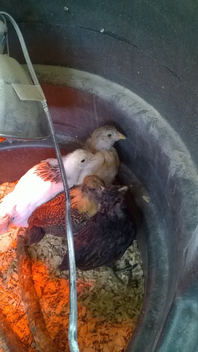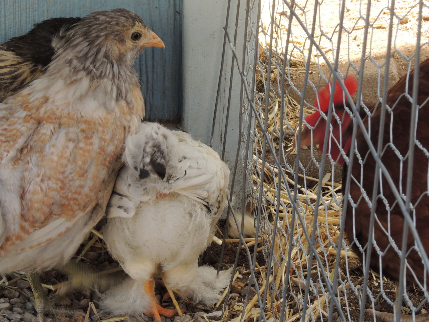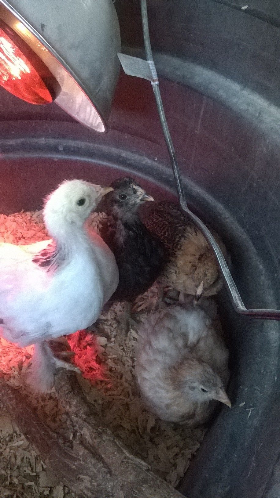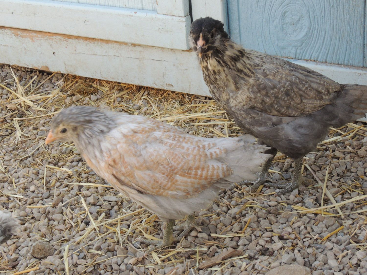 My easter eggers are 4 weeks old and one is just huge compared to the other 2 in fact she/ he is as big as my light Brahma wondering if anyone had any guesses as to the sex of these chicks.sorry Daphne the Brahma loves pictures Willow, ash, and Hazel the EE's not so much, so they are not the best pics and Daphne photo bombed most of them.