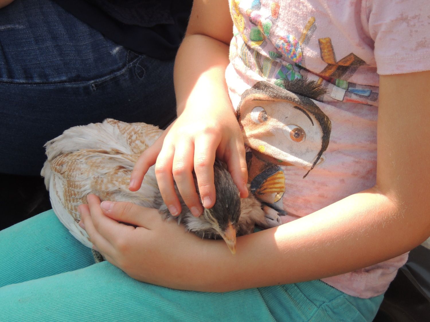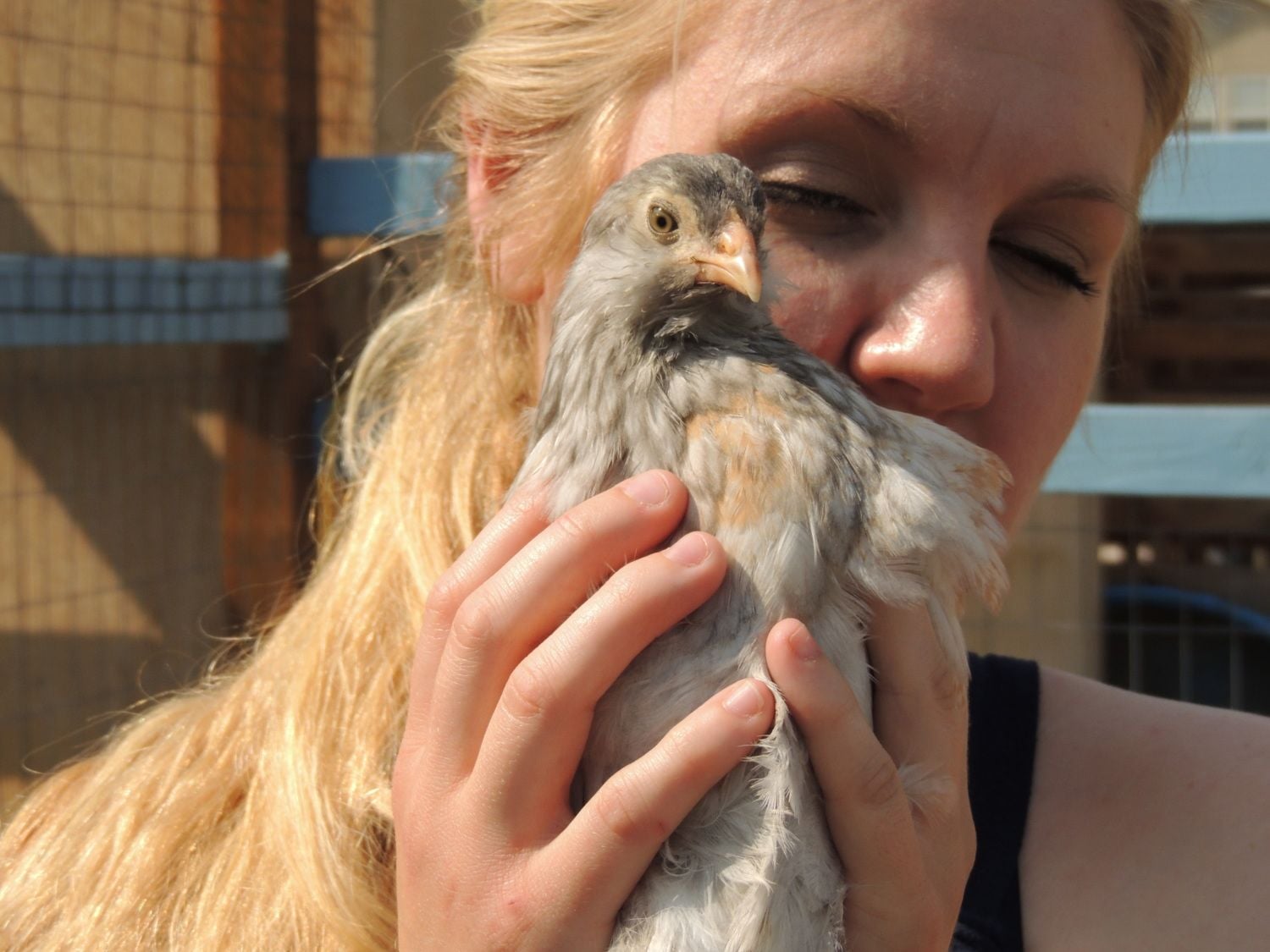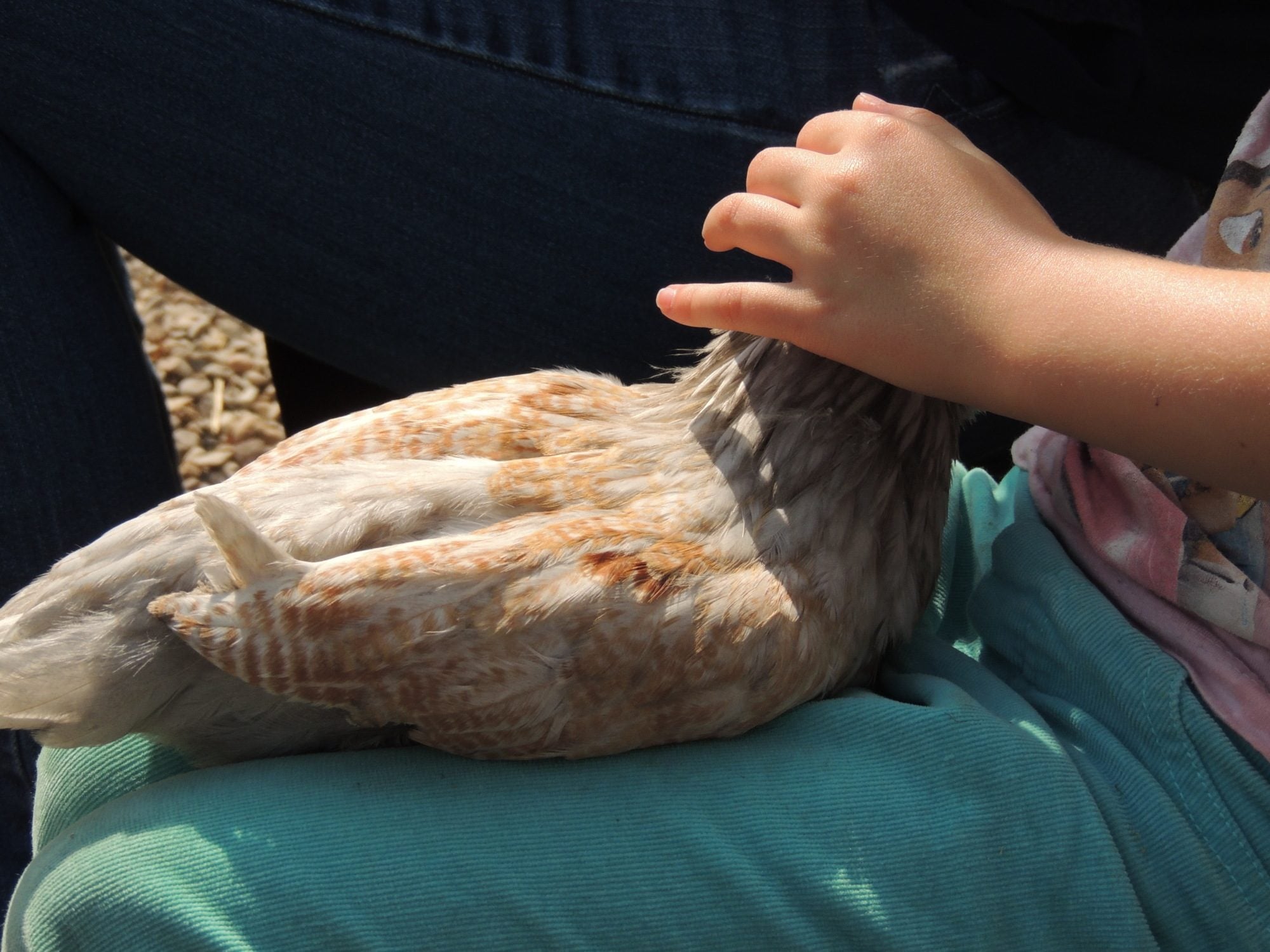 He's always puffing up his feathers and standing between me and the hen. He makes her sit down in the corner if I get too close. You can see a few wayward head feathers poking out in crazy directions while he's puffing up at me. I'll pet him and smooth them down and back out they come if I don't back away from the tub. He is so mad at us. He just stands there grumbling at us and giving us the stink eye if we're within a few feet of the tub. He's conflicted, he sees us coming and he gets excited, because food. Then he remembers he's mad at us, because of the dog, so the closer we get the more he can't decide if he should be excited about food or if he should peck us. He is healthy aside from the lost feathers and we were going to put him back in the yard, but he and the hen that is injured more seriously are getting along so well. He's not picking at her, and they stay side by side all day. So even though I know his injuries weren't serious and I probably could have put him back outside yesterday, I've left him in with her.