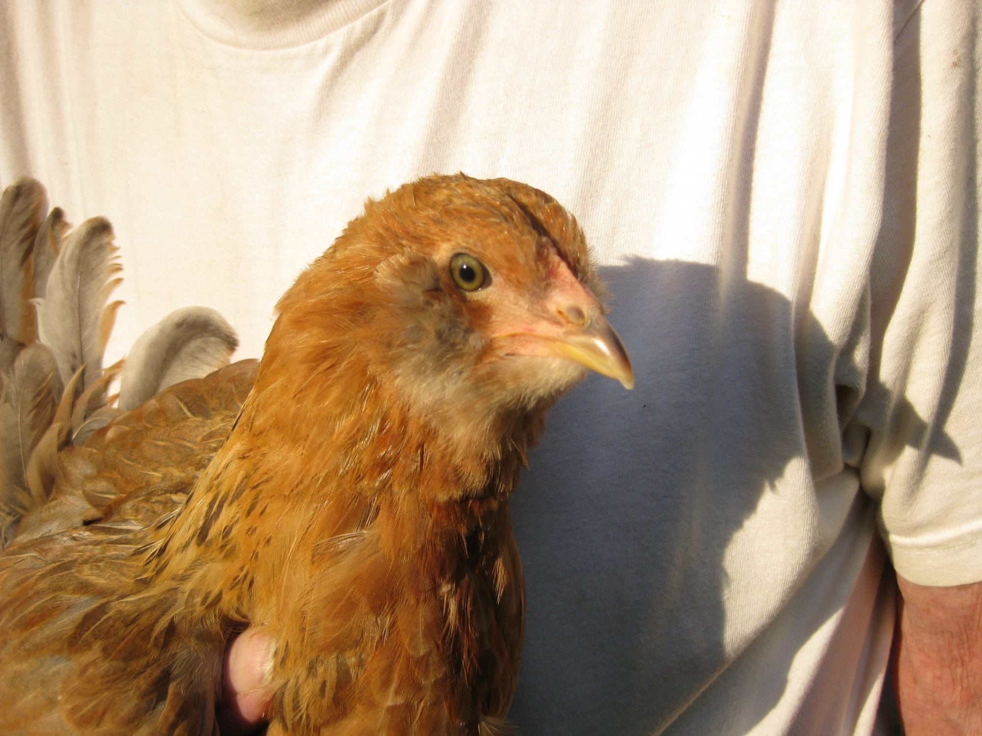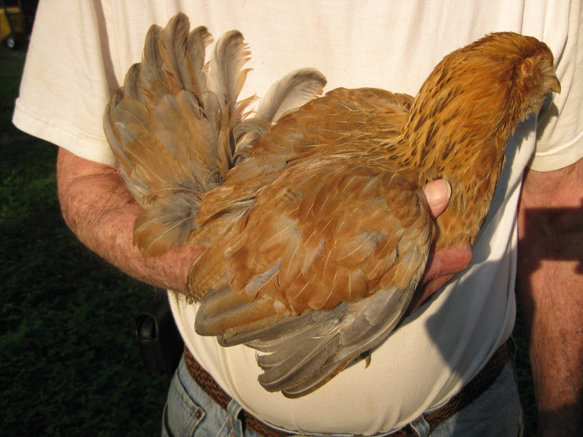 Nickypicky- This is an interesting one. Coloring doesn't have me thinking roo, comb either...I know that the last thing you want to hear is this, but it's true...You should know in the next 1-2 weeks. For now the saddle feathers are rounded, but I do notice that it's molting there and I bet the next couple days will have new feathers to show for it. Good luck! Definitely keep us posted. BTW the group shot, far right - STUNNING coloring. the other dark one is nice too but i seriously love the lacing on the first one. *drool*