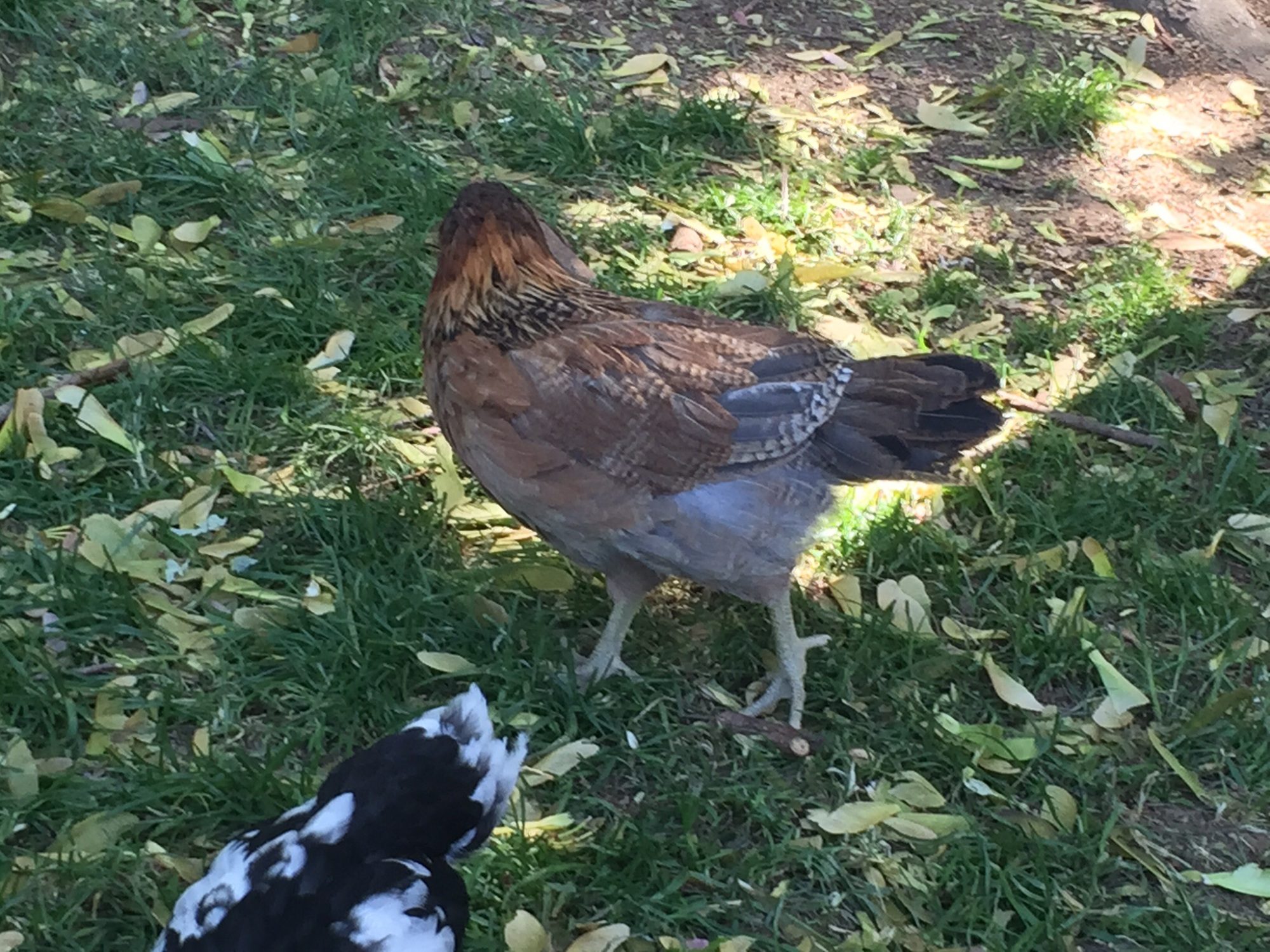 the black and tan one and the Grey and tan one in another post is also gorgeous. Do you know what breed yours are?Which chick? The black one was tuxedo. Now (s)he just has white under the chin. That my most curious and bold bird of the bunch. Now the tan and black, will they look like that before the ominous shoulder feathers come in? She has a lot of bown on her chest so thats what got me thinking shes patterning like a pullet