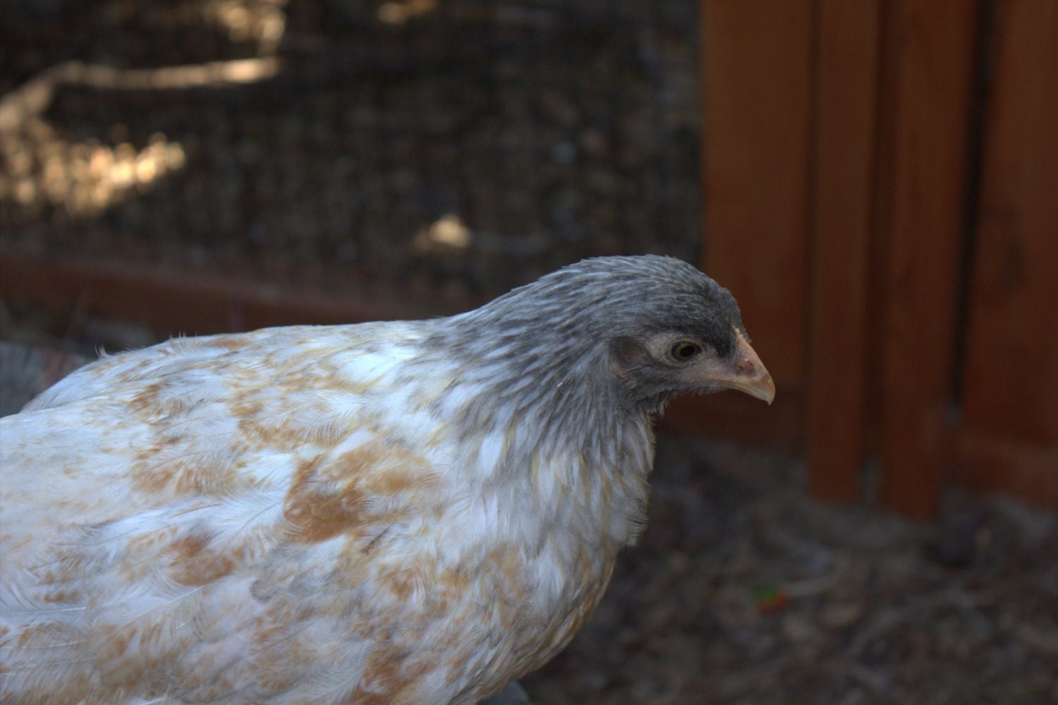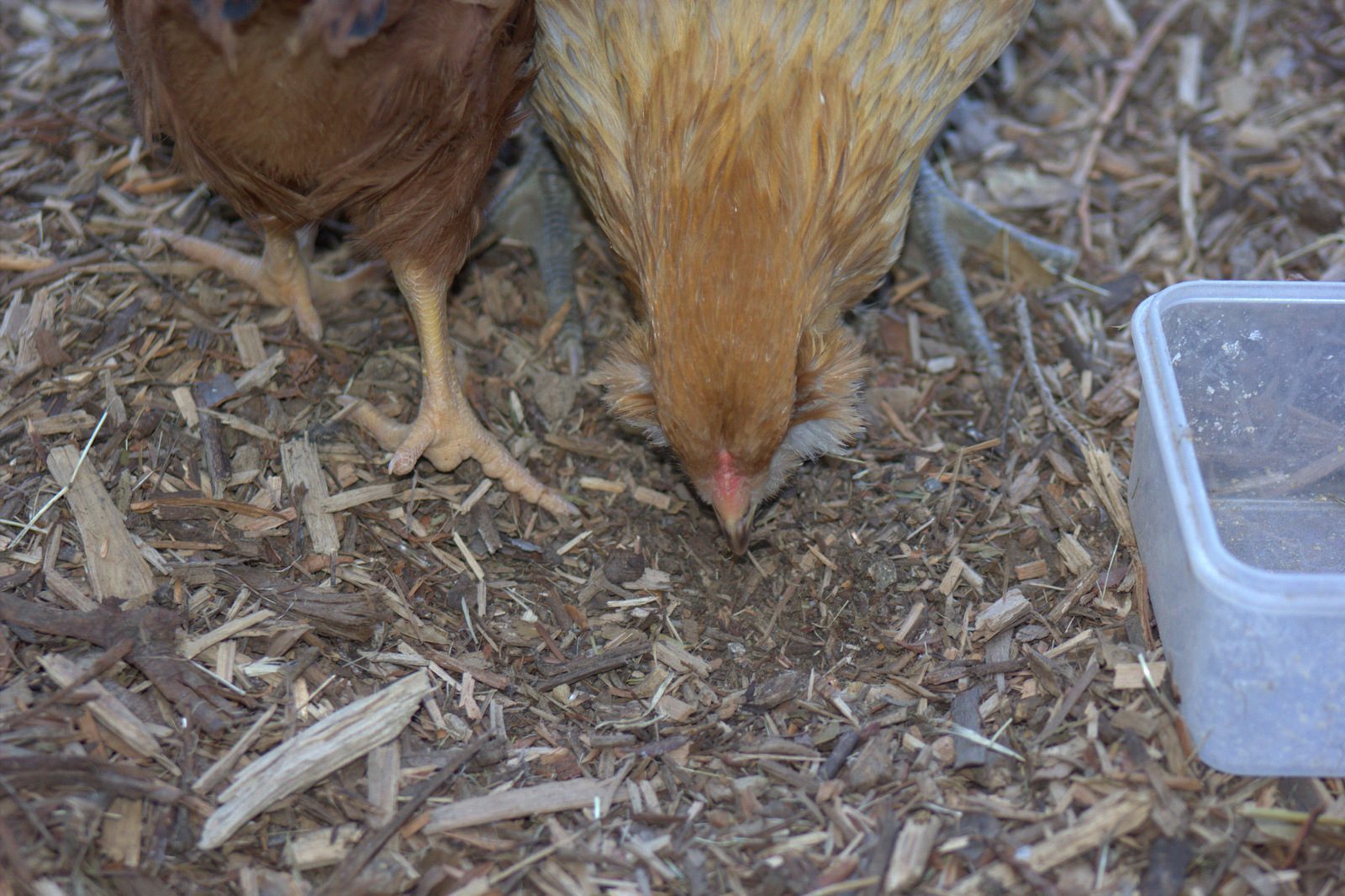 . I've also been intrigued by the whole hatching your own thing, would have to buy eggs as we won't keep a rooster, but I think it would be a great thing for my son to watch. My husband said that we could do it sometime if we had a broody hen, but I think an incubator would be neat too so you could watch them get out of their shells. Some of those barnyard mixes of eggs would be a fun experiment if they have mostly breeds you are interested in.Finally got some pictures of the one that has been making me guess. This chick feathered quickly and always had nice tail feathers which made me think pullet. Now it is 8 weeks old and has me second guessing my self. Its comb is pinker than its siblings but still not very wide in my opinion for an 8 week old. Now i see some red spots on its wings. Its sister has no red spots. i know i won't know for sure until it actually lays or crows but what is your opinion.