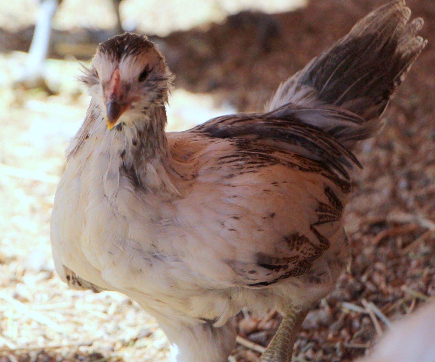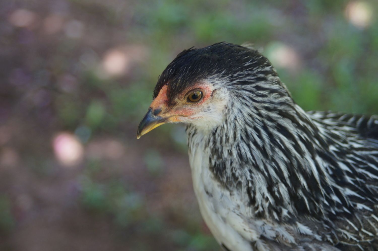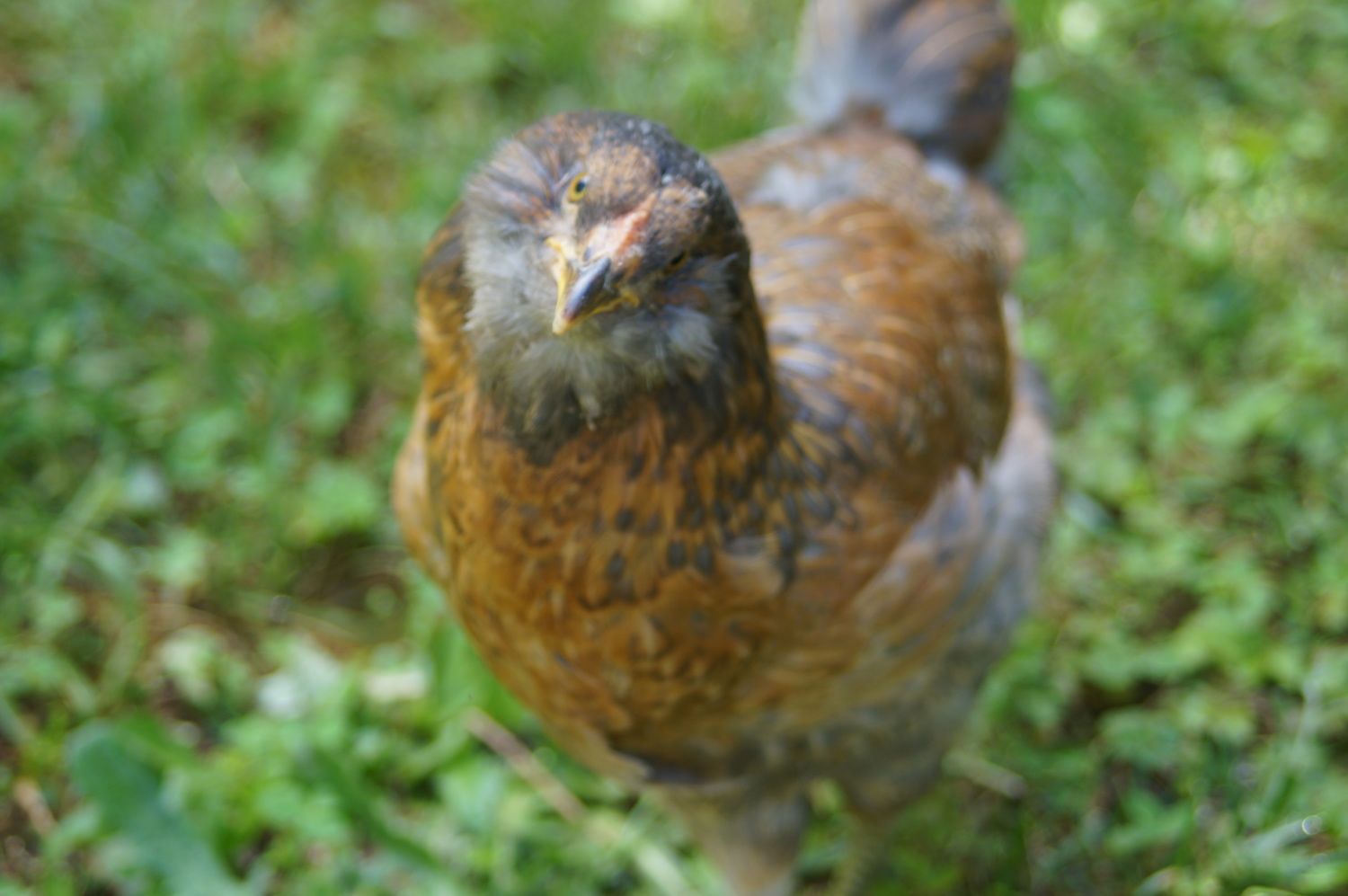 The face, comb, and wattles (if they have them) all get red as the pullets get closer to laying. Some pullets are just naturally more red than others (I notice this more in silver based birds like Esmeralda) or they can get red from high temps or strenuous chicken activity. Esmeralda is a pullet, and she looks to be in excellent health. A lot of skittery pullets will calm down and become friendly once they start laying.