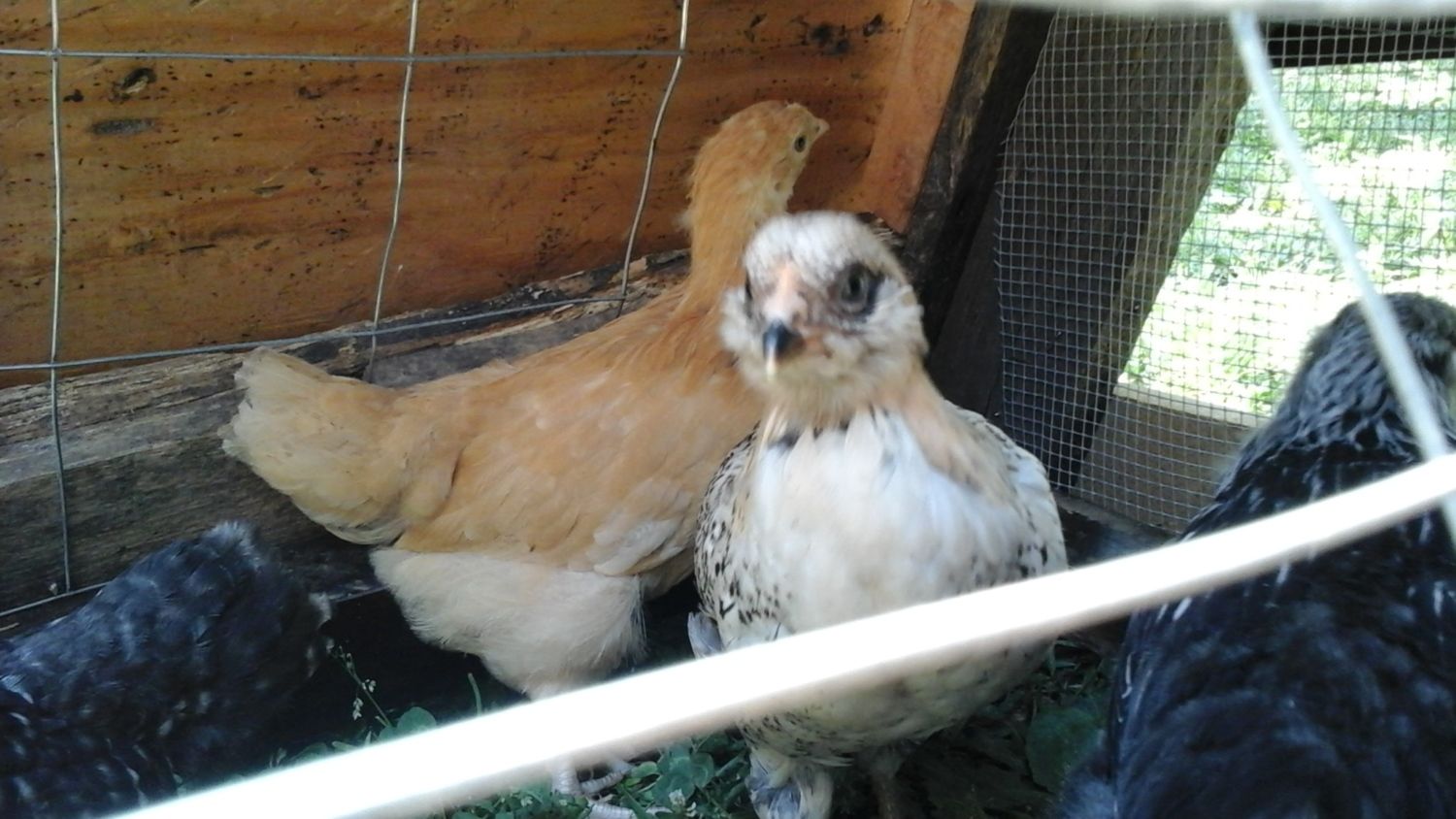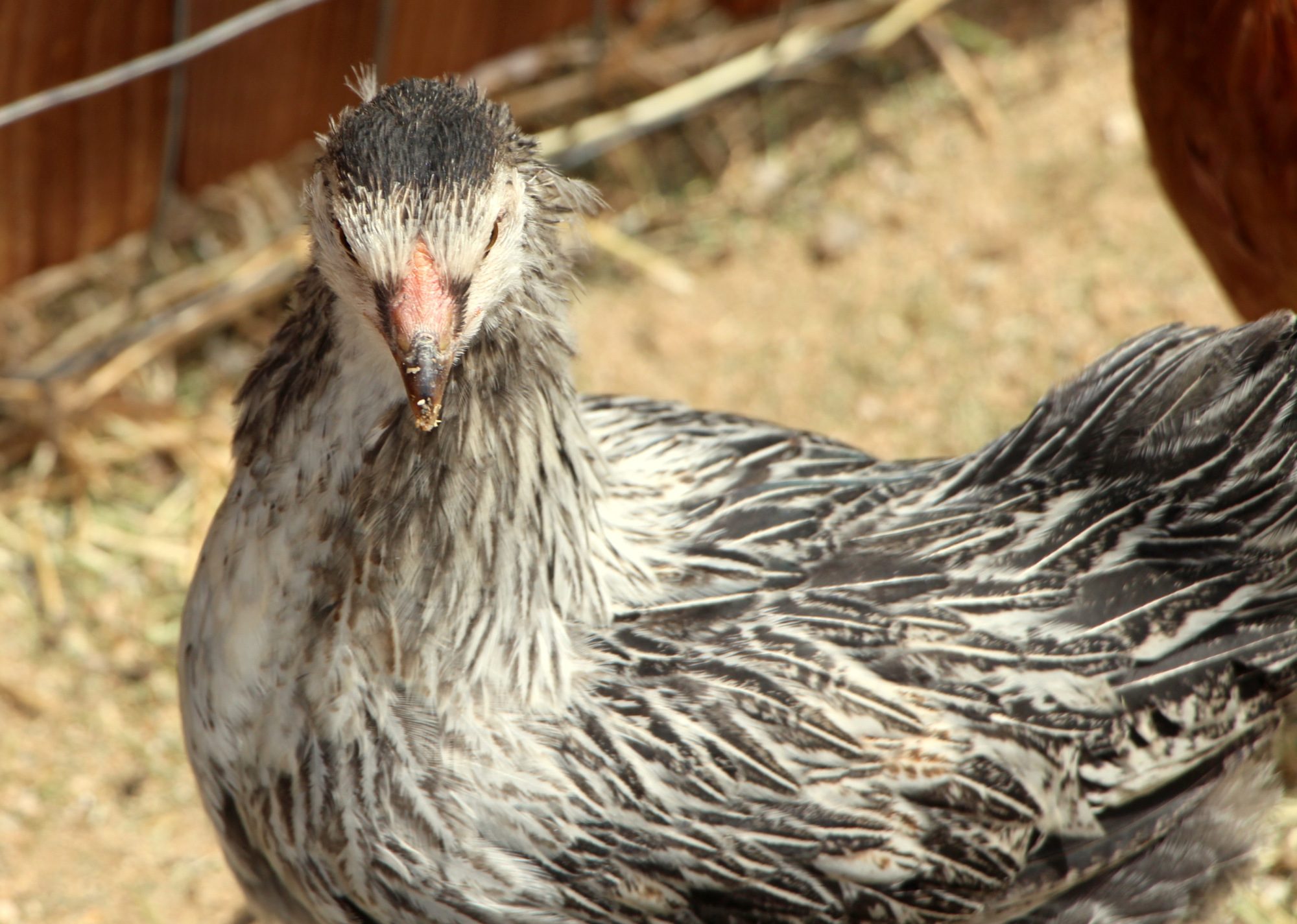 Yay! Pullets for sure at 9 weeks. Usually by this age a cockerel is obvious from across the yard, with larger combs that are raspberry colored.Because I'm learning, I took another couple of pics of them...now at nine weeks. I also took a body shot of the dark grey in case feather pattern will help make things clearer. I realized that while their combs are pink, their combs are still very flat and underdeveloped compared to other pics I've seen, so maybe there ARE pullets. I really hope so. It's a good thing I didn't sell them or give them away quite yet!