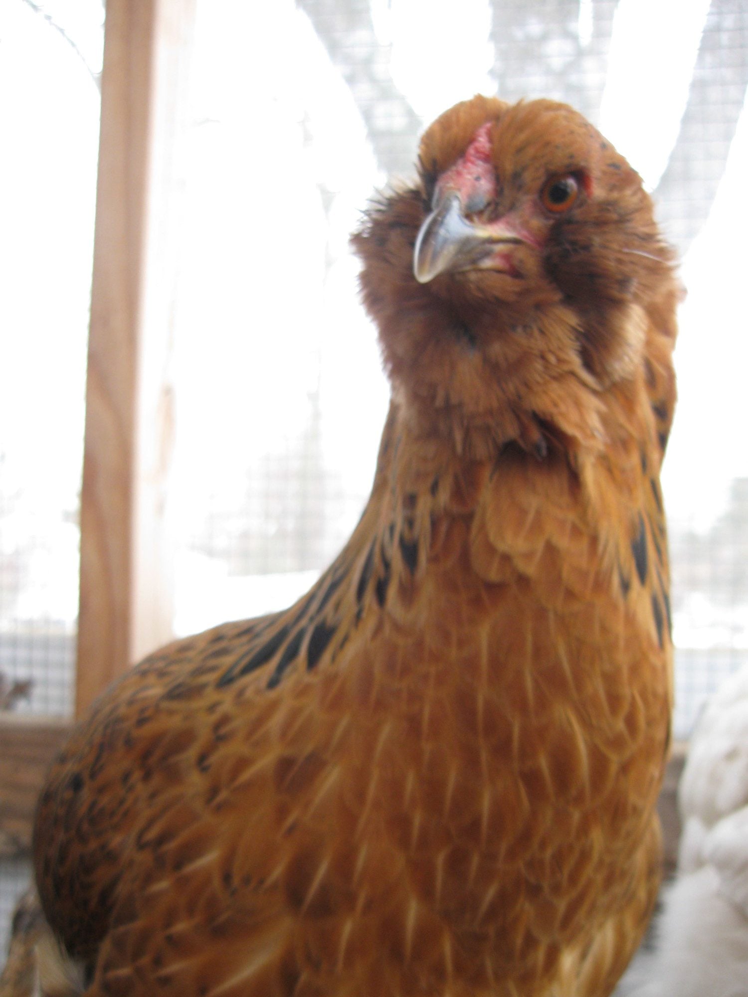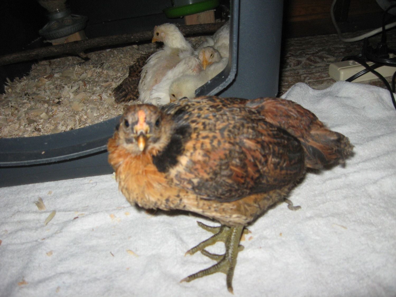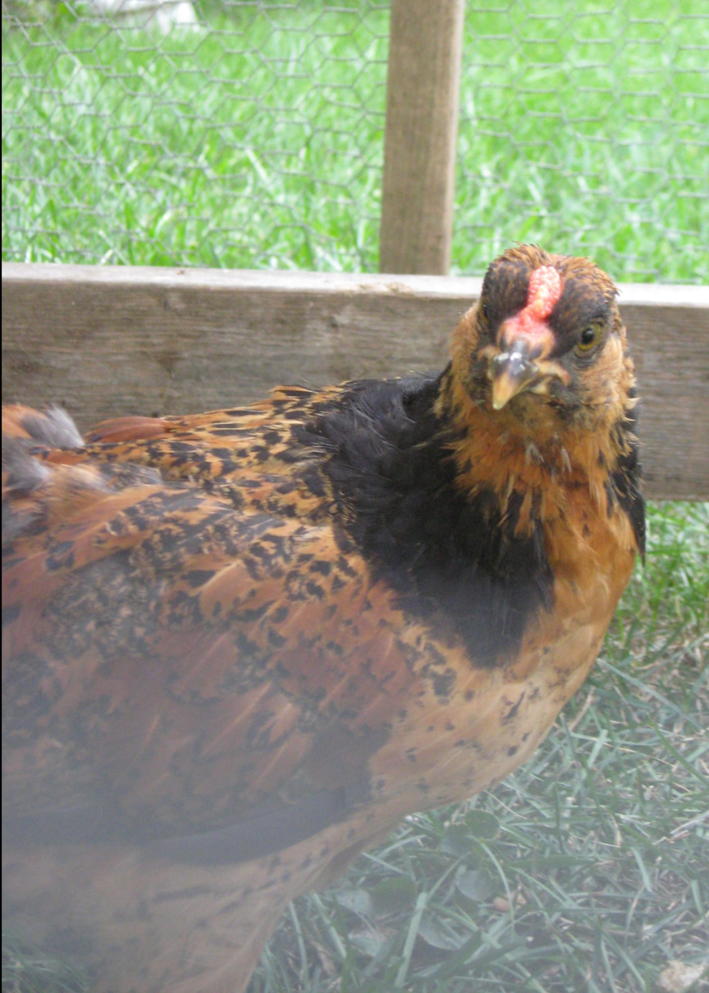 A different 4 wk old brown roo with 3 row pea comb & red patches just starting