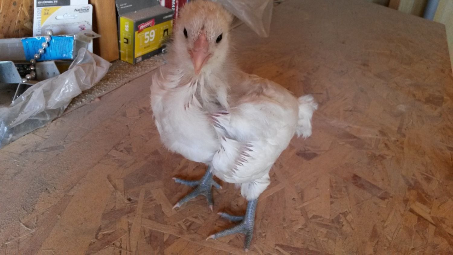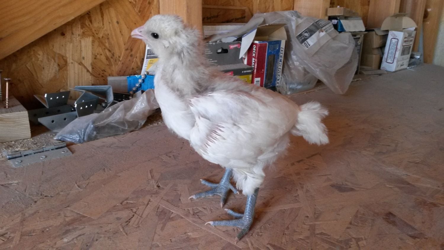 I'm thinking this 4 week old white Ameraucana is a cockerel. What do you all think?