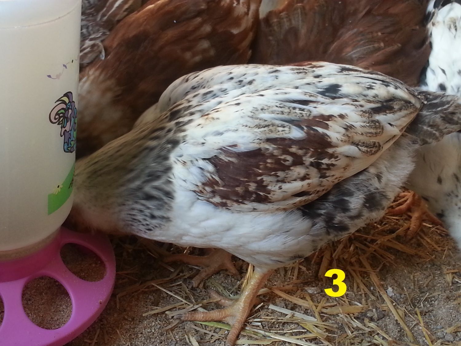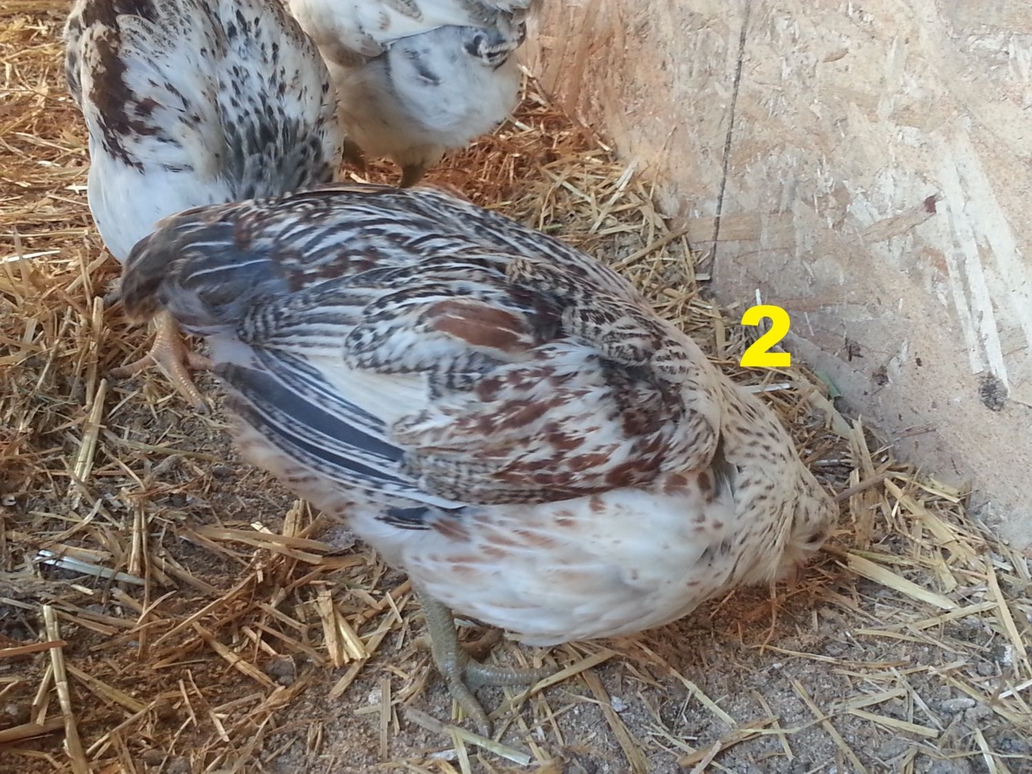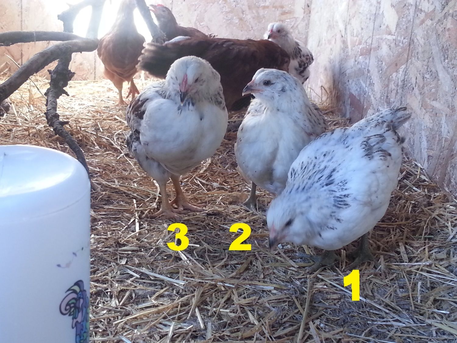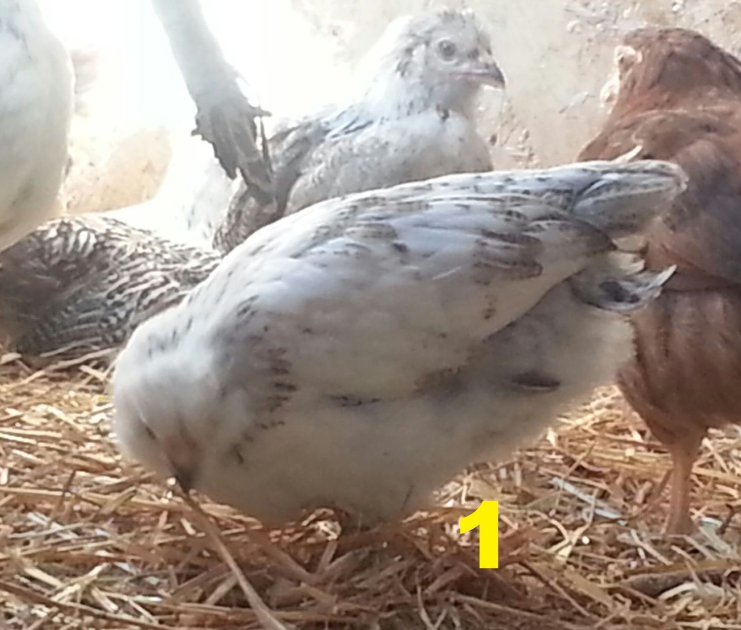 We hatched 8 new EE mixes 7 weeks ago, and I have a few of them figured out "for sure" as males due to their bright red combs, but there are a couple of them that have me stumped. One is a PR/EE mix, the others are "pure" EE (dad was silver, mom partridge). I've numbered them 1-4 below, I'd really appreciate any thoughts about what we've got!
