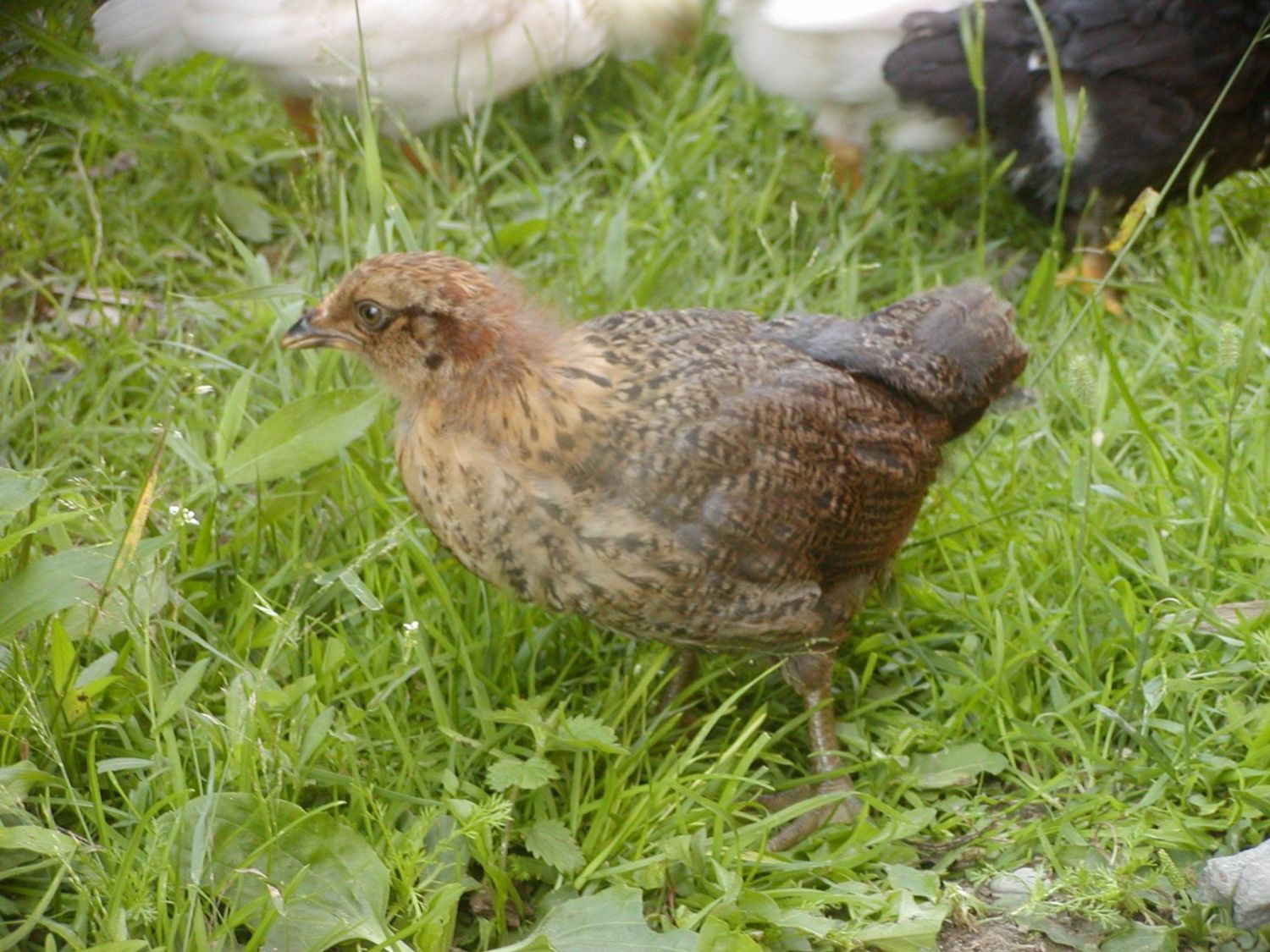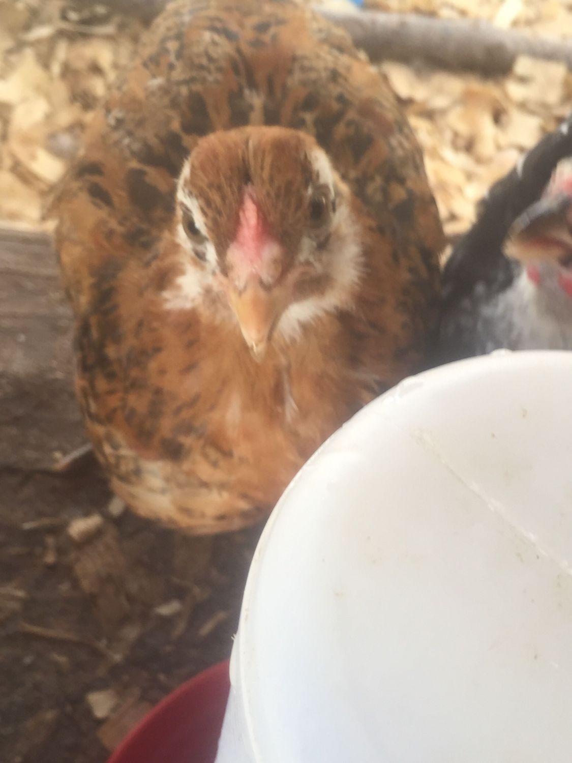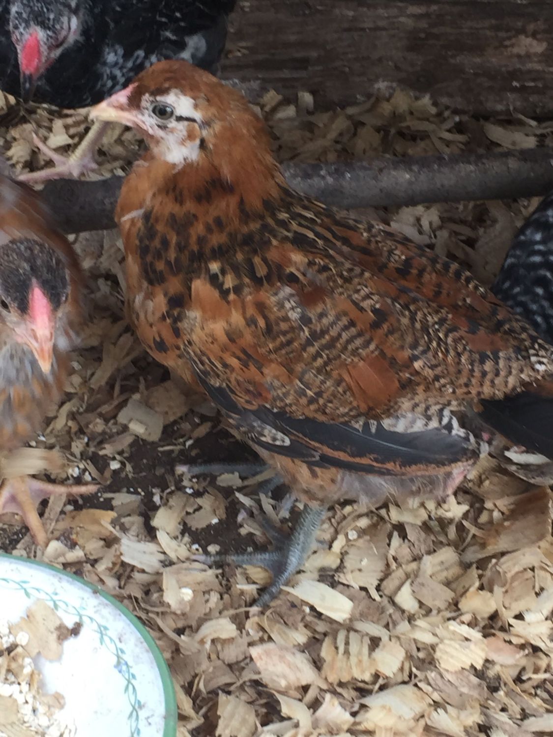 I have an update on my orange and white chick. At this point I'm guessing pullet despite the red patches, it seems like it's in the process of coming in as an overall pattern. The comb is sort of wide, but flat and undeveloped. Interested in what you all think.
