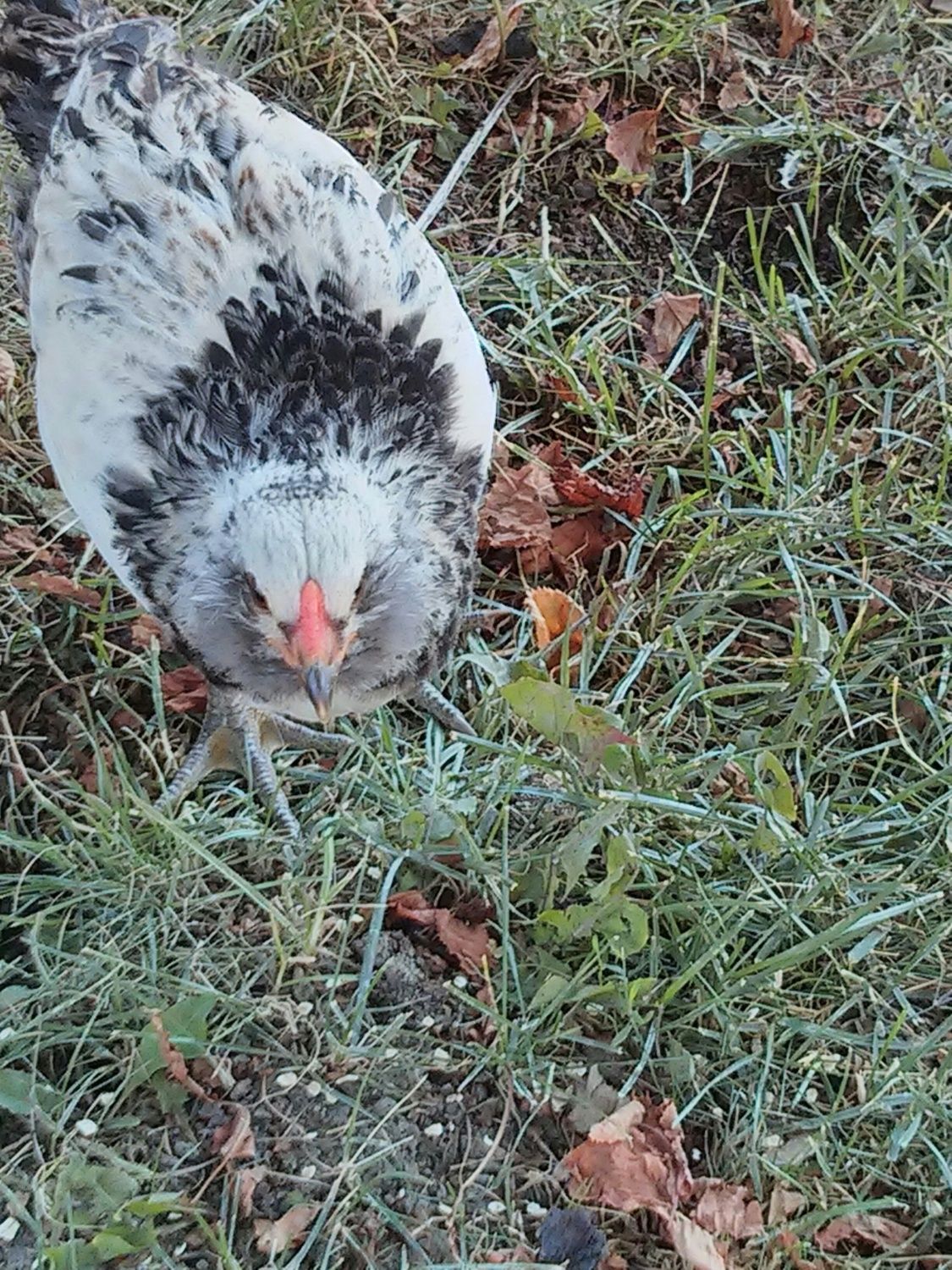 It's really hard to tell without being able to see the combs up close. I think you have mostly boys. Again.Hi all! I'd love to get some opinions on my 7 week old easter egger chicks. There are 7 there all together, sorry about the pictures, they are very camera shy and the only way I could get near them was to sprinkle oatmeal over the ground in front of me and they still wouldn't come close enough for really good pictures. There are 4 black and whites (I think the whitest one is a girl and one is an obvious roo with a big red comb already, the other two look really similar, one has darker grey muffs and the other's muffs are lighter, thinking boys), one all white (boy?), one all black (boy?) and one grey patterned (pretty sure it's a girl). Last year I hatched out 7, 6 were boys and I was totally in denial on 4 of them until I posted on byc! Found good home for them last year, but this year I'm making an appointment for "processing", so I'd like to give her a number. Thanks!