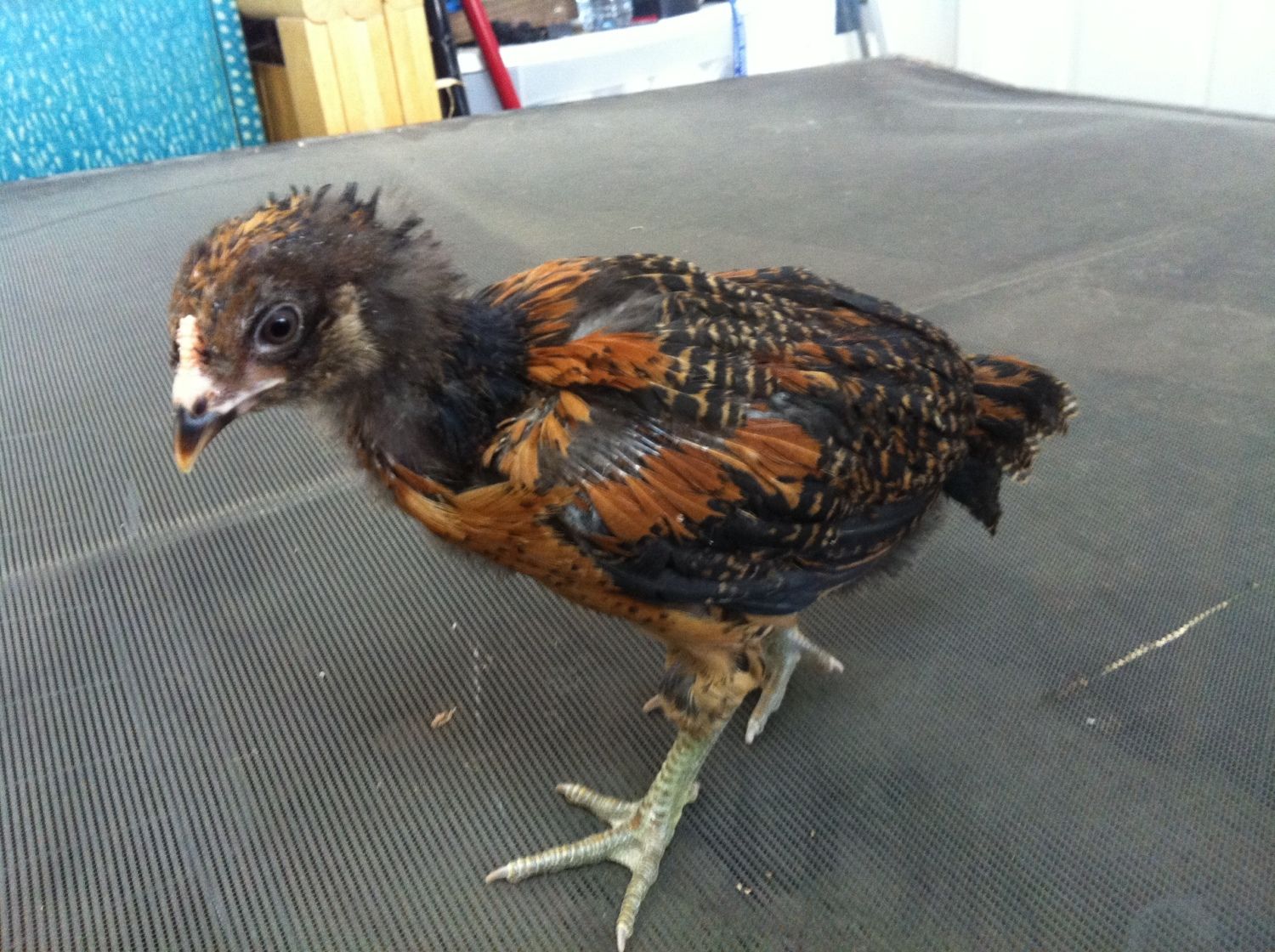 Hoping this one is a hen also. Though she may be too young to determine. She's 3-4 weeks