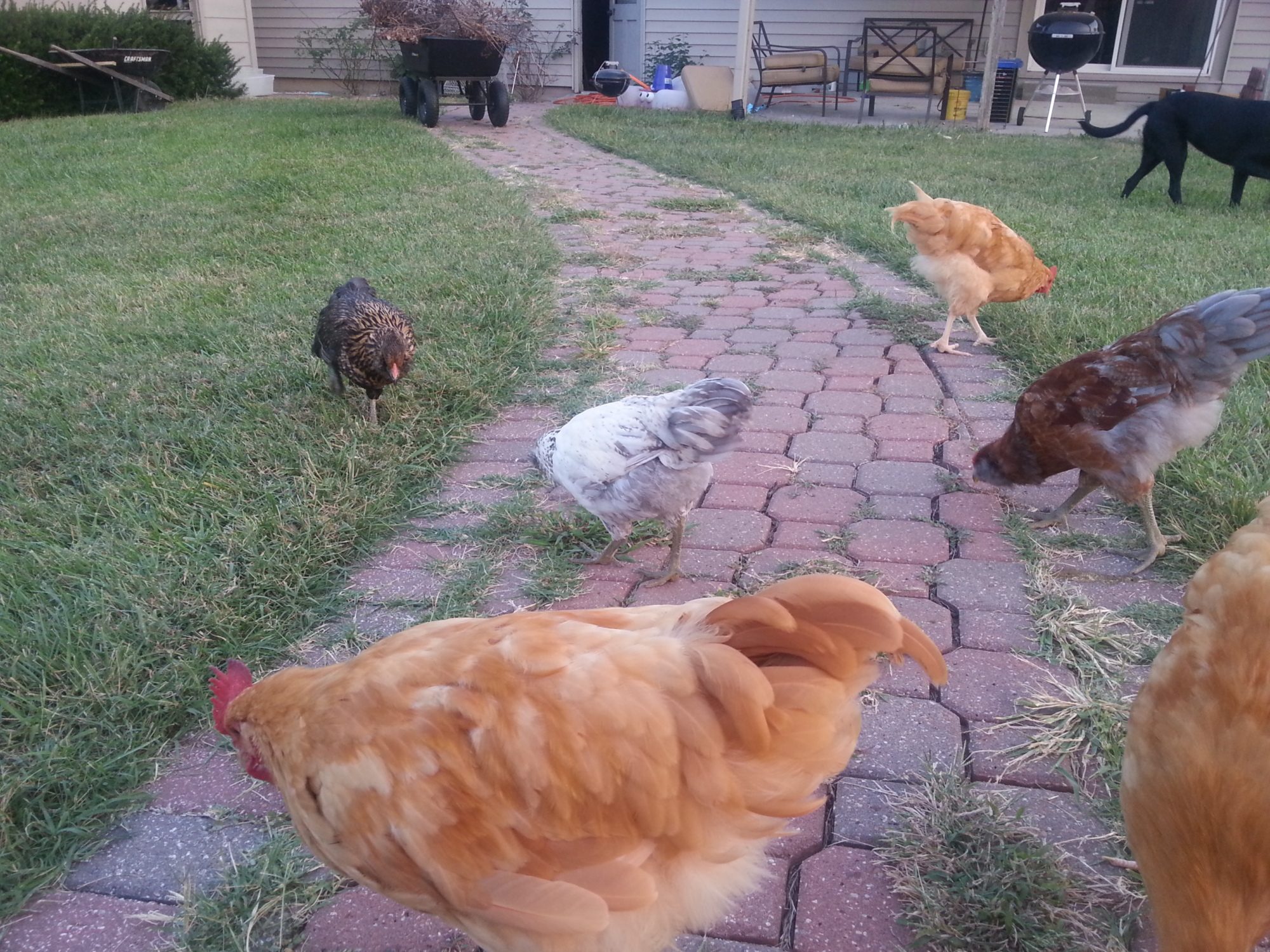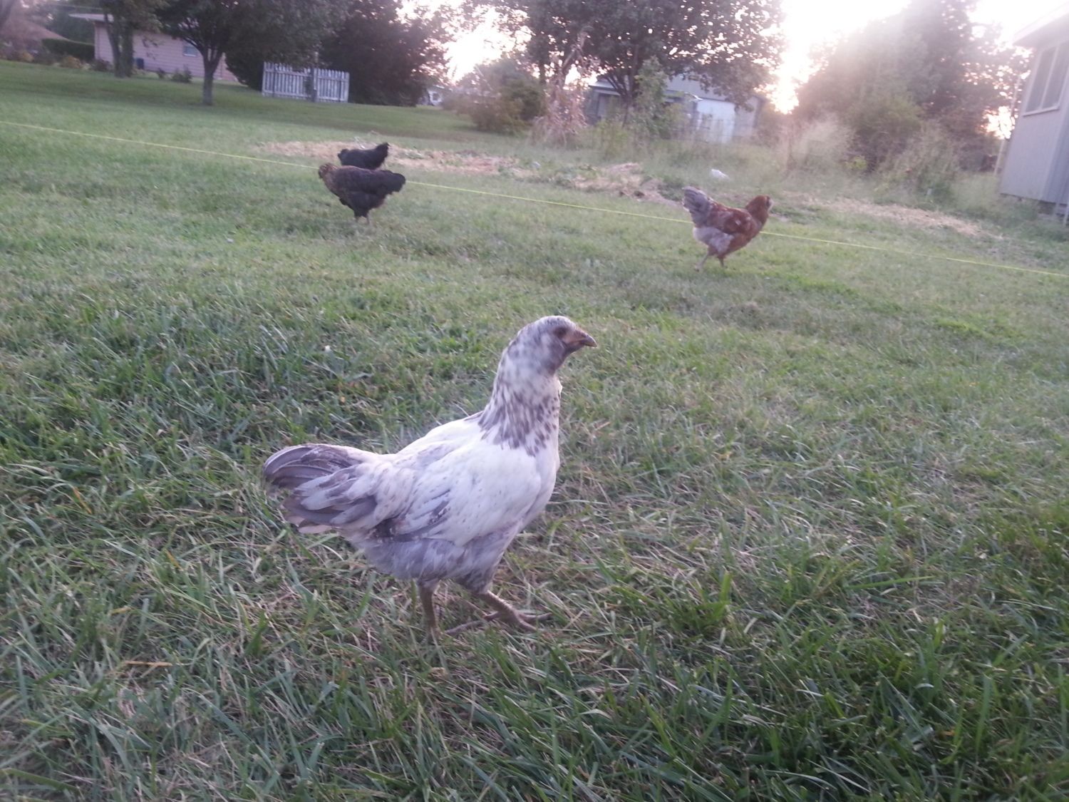 I posted Bertie a few weeks back but wasn't able to get a good shot at the time. The thought then was pullet. Here's a few from Tuesday evening. It has no comb whatsoever, and does not appear to have pointed hackle feathers (that red EE behind her definitely has the hackles going on as well as the 3-row pea comb). She is 13 weeks old. I'm concerned because there is the slightest bit of red showing up at the very tip of one or two of her flight feathers.