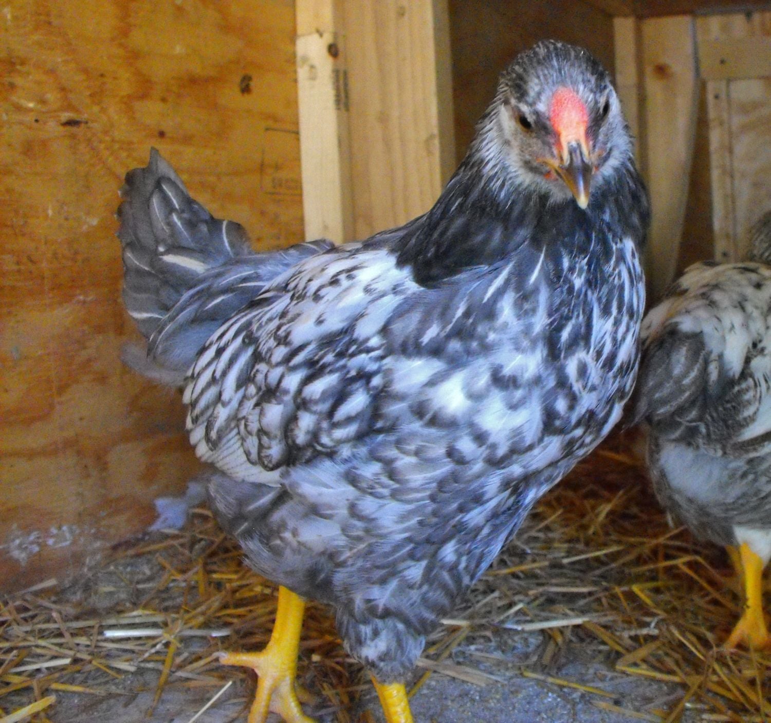 These are the second hatch we had. they are 6 weeks old. Male and female. They are hatched sex link. Males brownish gray, girls bluish gray. They look just like their older siblings.