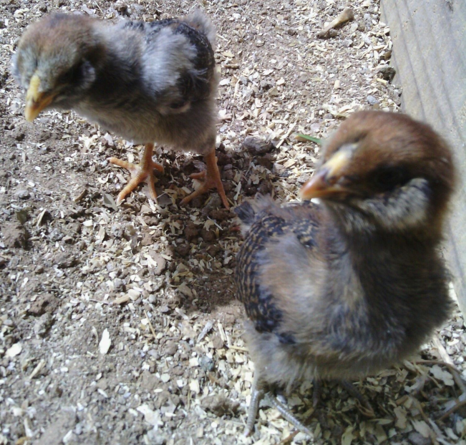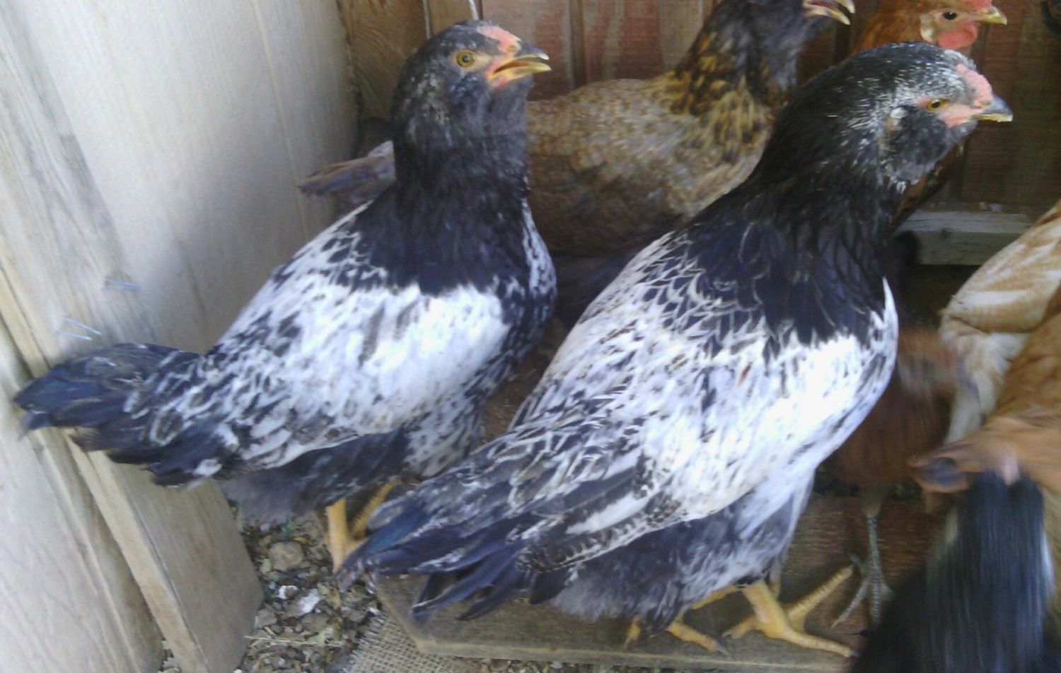 I can't wait to see them! I bet they look similar to my chicks. I have 6 more babies with hens and they all look like the others I've had except two look like they are going to be color differently. Here are my two boys I posted about last week. One went to a new home yesterday and the other we are keeping. Cheeks- has beard and muffs