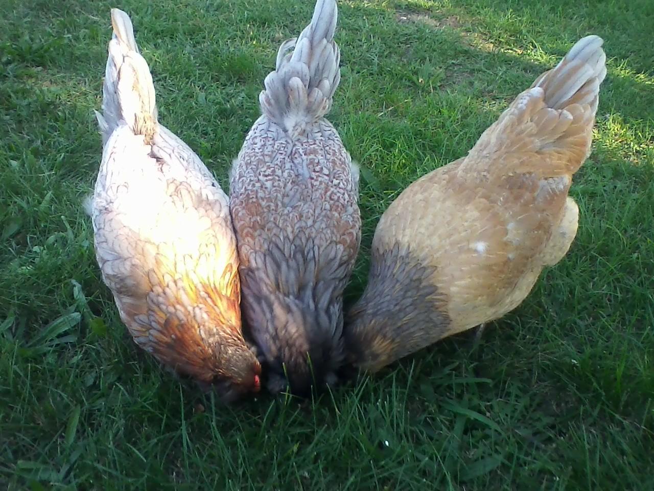I got three easter eggers this year for my girls. I was just trying to figure out what color they are. How old do they have to be before they start to lay. My bard rocks have been laying for 3 weeks now. But they were a couple weeks older. Honey, blue and lollie pop are great with my girl. They are just wounderful pets. The first pic is lollie pop. Sencond is all three left to right lollie,blue and honey. Third is blue and honey. Fourth and fith is blue. Sixth is honey. My two year old loves her chickens. These three will let her pack them around the yard. Our other laying hen not so much. My other daughter is 6 and she likes to learn about her chickens