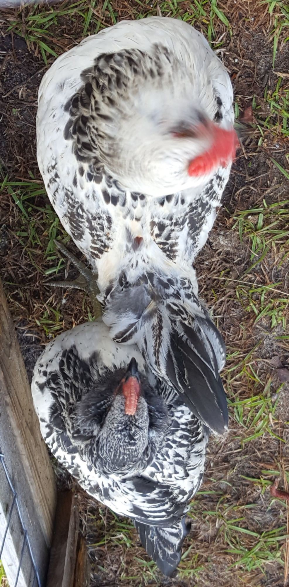 That's so cool! I have 1 of my chicks rides its' mama around on her back... it is so amusing to see.Some roos stay sweet and tame forever though! I had an EE rooster named Cowboy for years (a rescued chick raised by my broody hen) Even after he had grown, had his "wifey" and raised a batch of chicks of his own (such a great dad too! He let his chicks ride around on his back and call them to any bug he'd find) he would still come in the house, jump up on the sofa onto my lap and want cuddles.