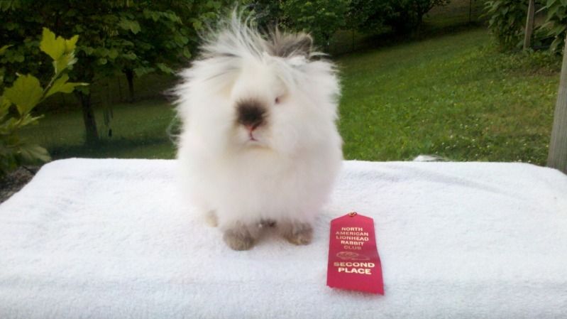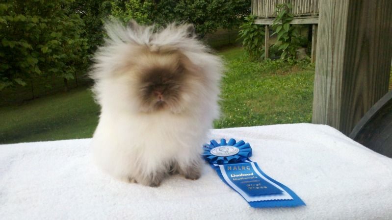 On sunday, there was a regular show, with over 200 lionheads. My sable point doe got Best of BREED! My Pt white buck got Best Opposite Sex of Variety Pt White.