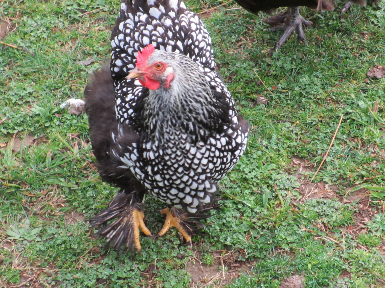 He is going to be a big boy, with fluffy feet. 7 weeks old and he is bigger than his hatch mates.
