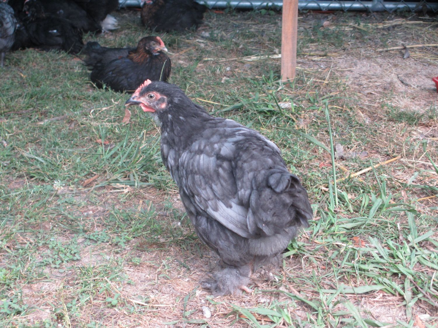 Not as bad as last year I have more pullets than cockerels this time. 28 pullets and 18 cockerels. Maybe the cockerels where the first choice for the hawk. Or maybe the boys where just braver and took more chances to get bugs in the open.