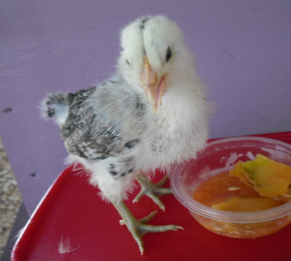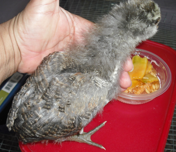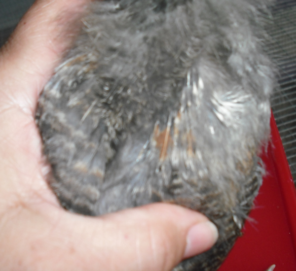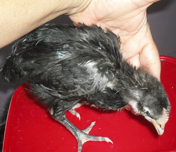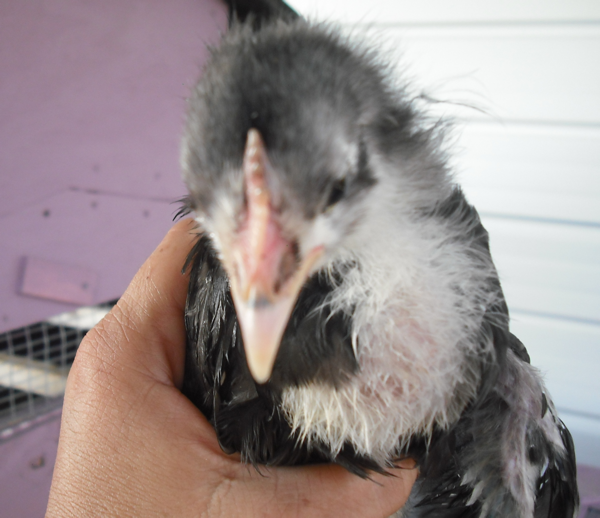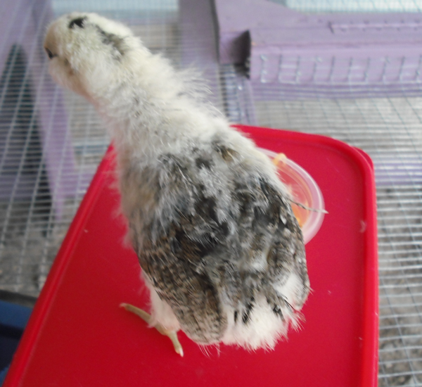 In this pic you can see the difference in their tail feathers. Chick A is on top