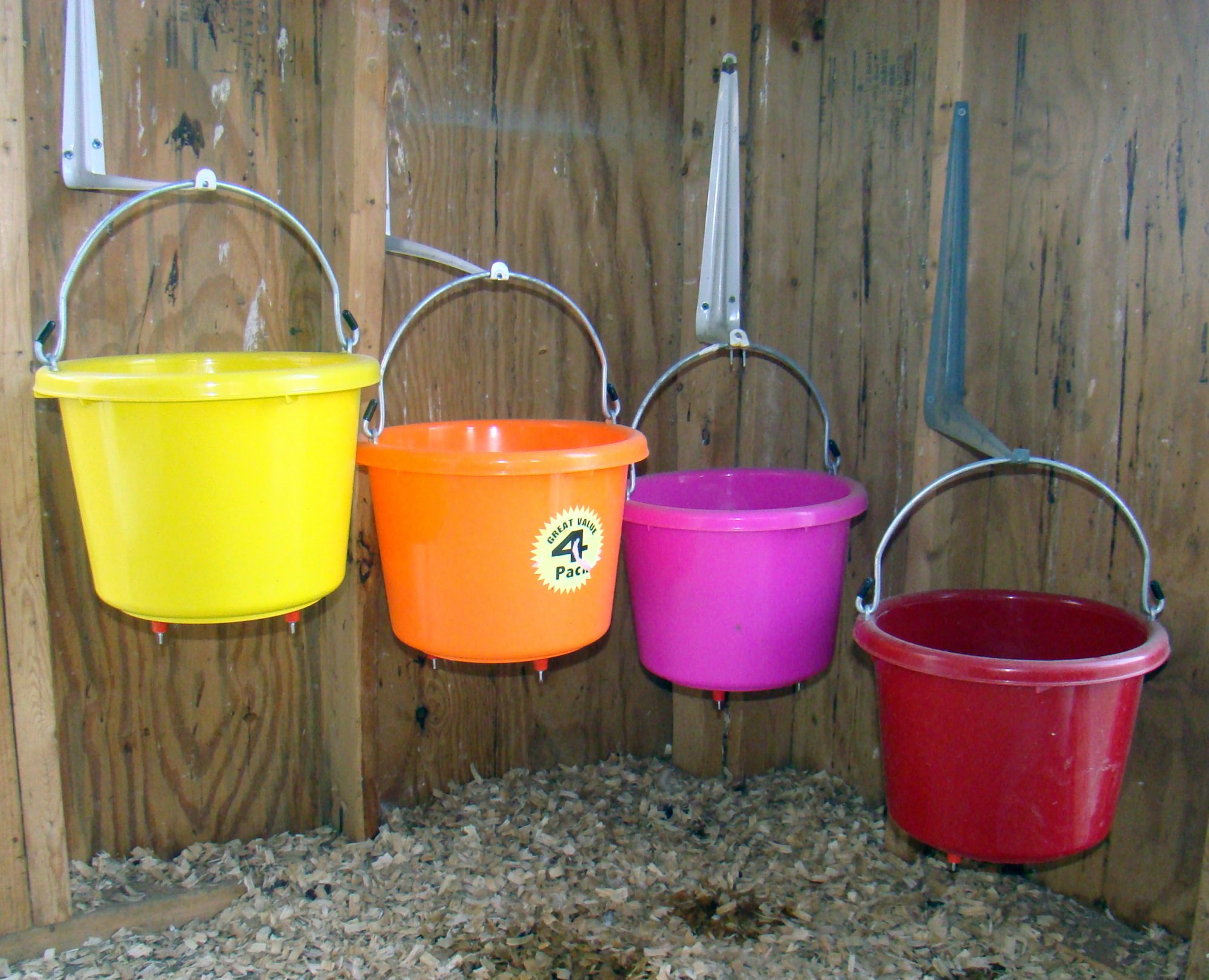 Here is a picture of my "water corner" that I promised. Nothing fancy but works great for all the different age groups that I used to have. I did the PVC thing with the central water tank and it looked great but was over kill. These are much easier to remove and clean or fill.
