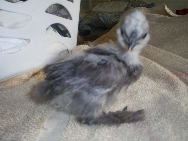 OK....I cannot decide if this is going to be a splash or blue. It was light blue when it hatched and came from a splash hen and white roo which I think gives only blue or white.