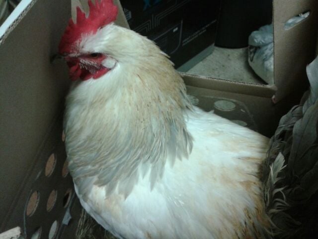Once every 10 to 14 days I pick up what they don't eat, mix with whole corn, cracked corn, and 4 grain scratch. This gets fed back to the roosters.