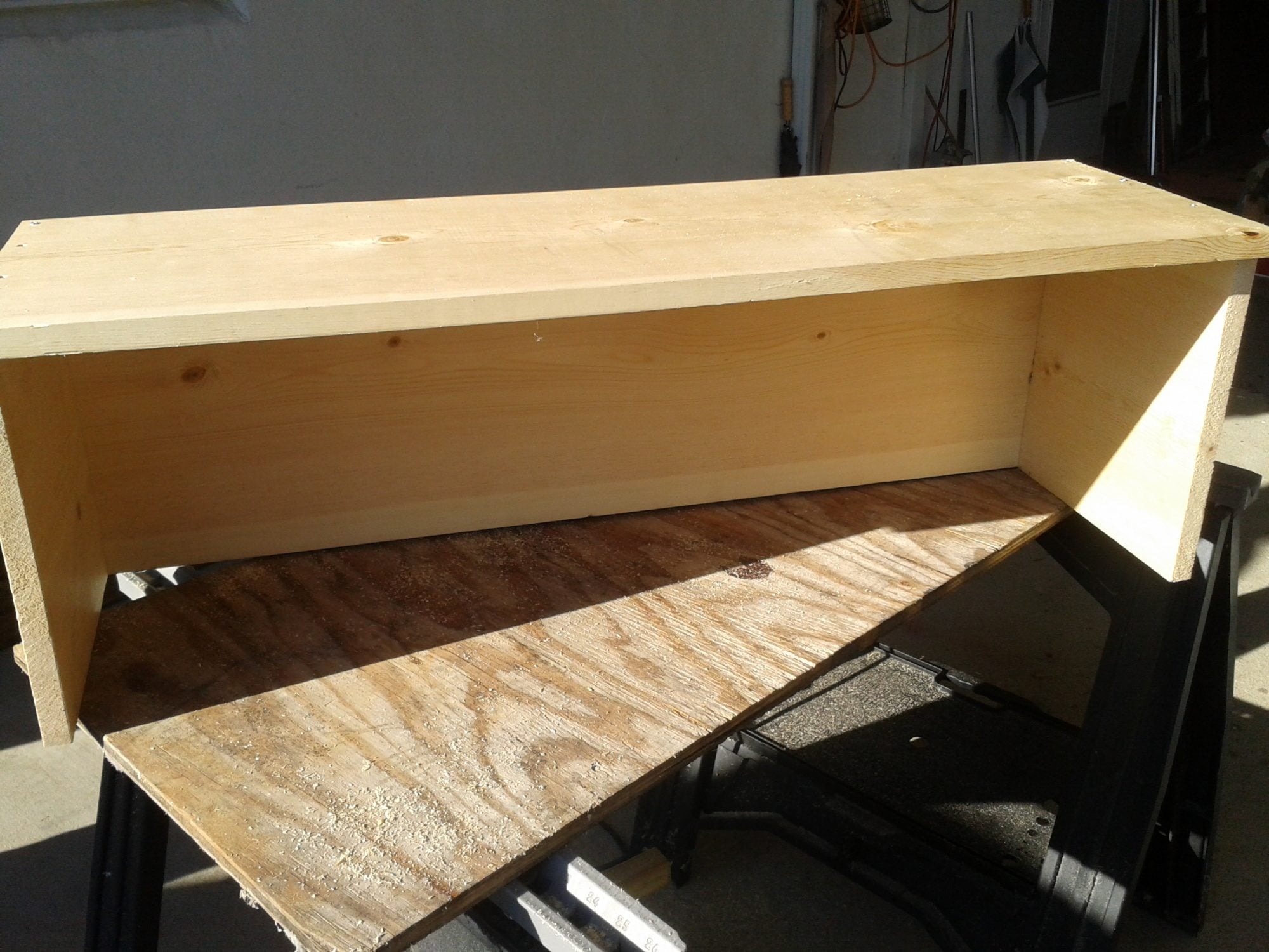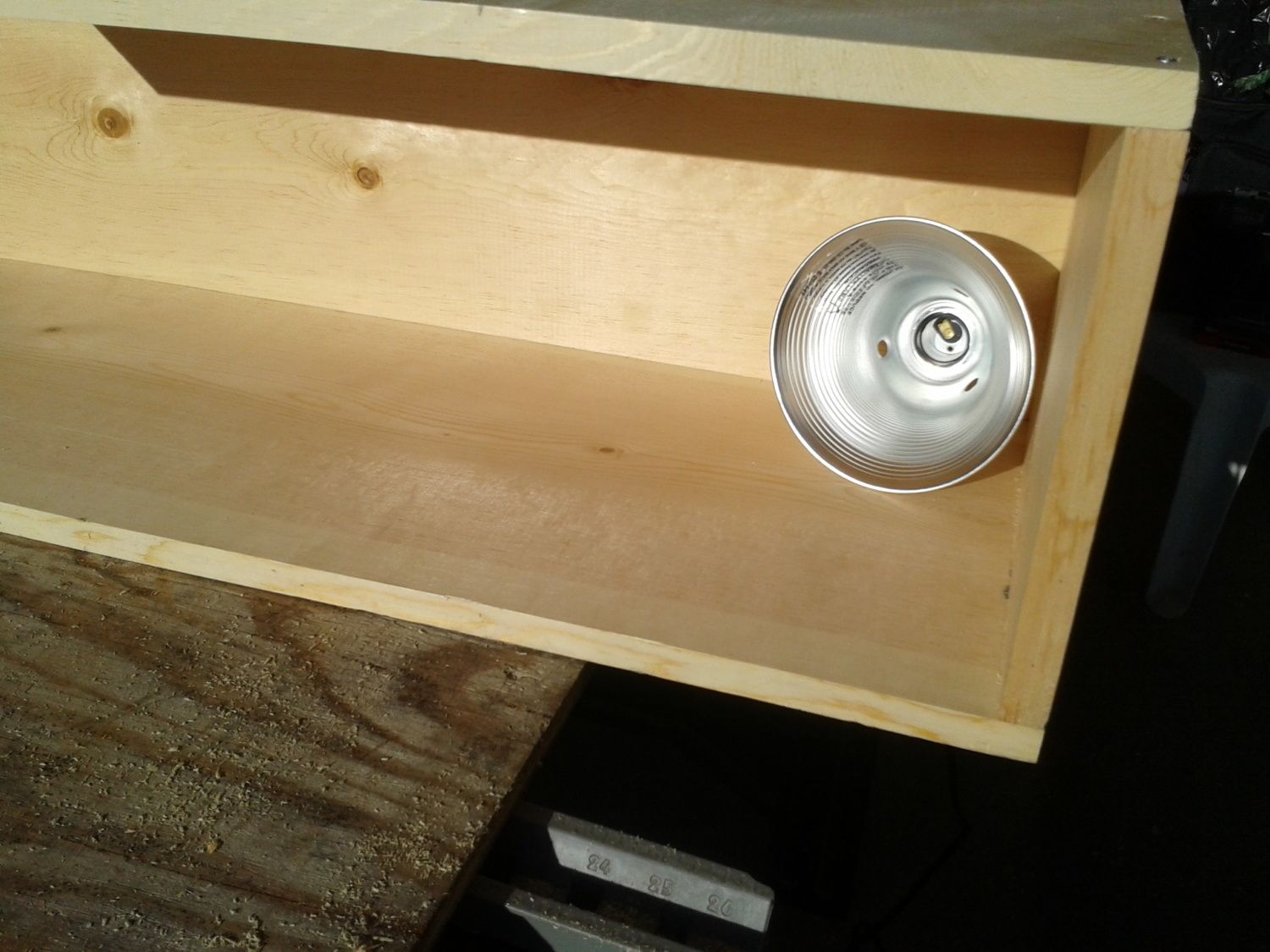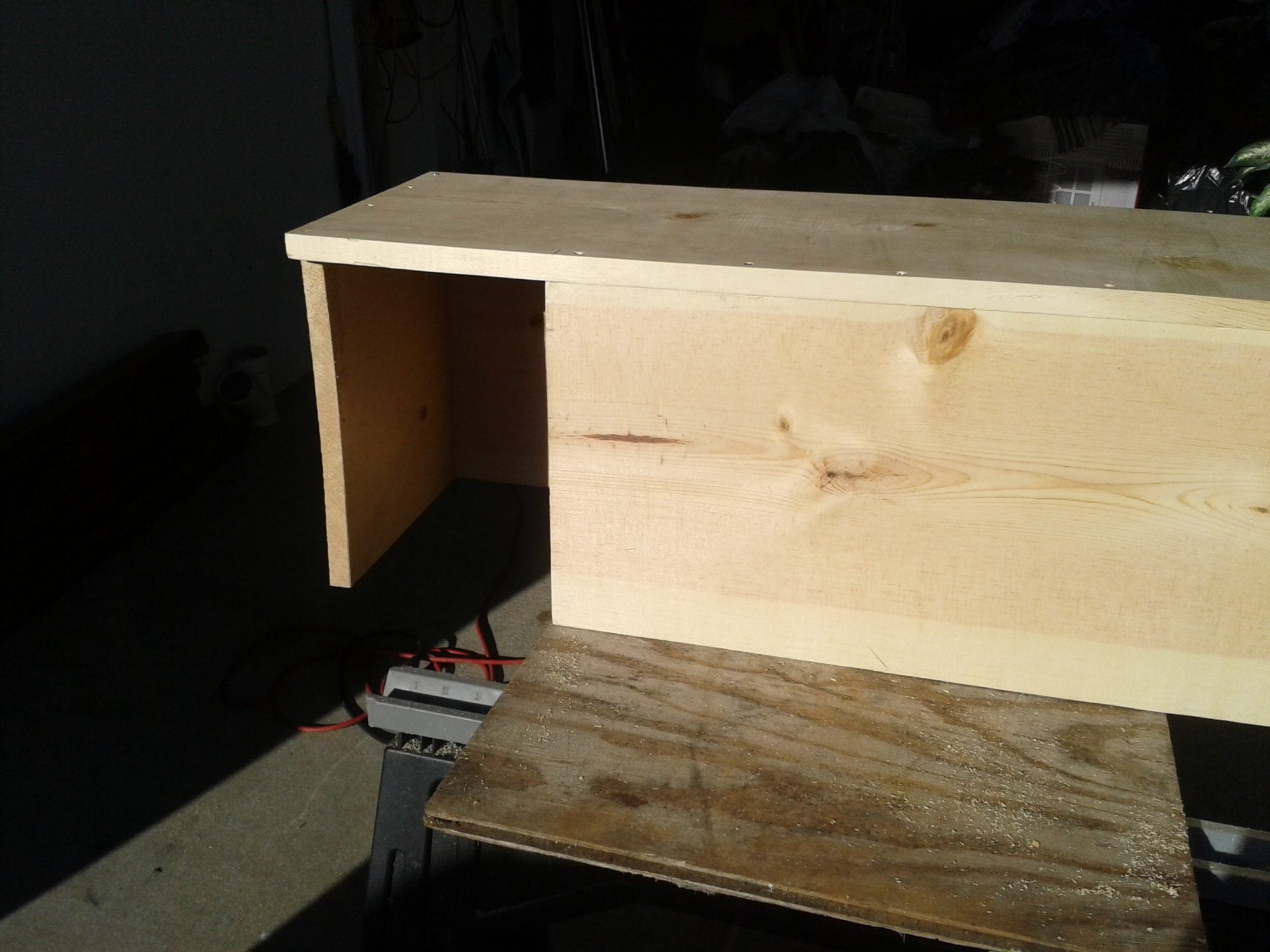Then we cut a board 28" long for the front. This left 8" or so for a doorway on the far end away from the light.