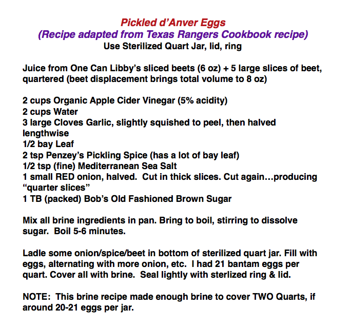 I have Zero idea, as to how my adaptation of a well-known pickled-egg recipe will turn out. I blessed 'All", when put in the fridge.